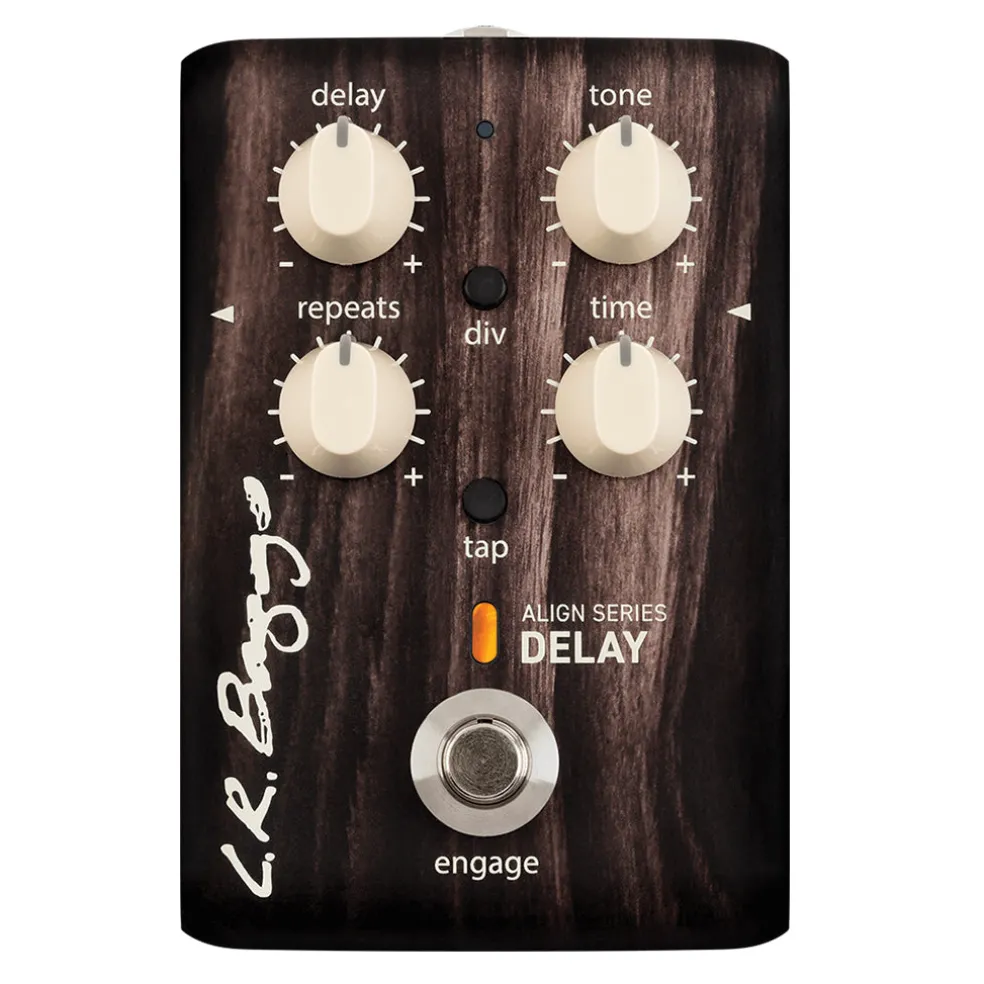 The Align Delay brings a classic effect to acoustic musicians by optimizing the signal for high-fidelity instruments. By expanding the range of your sonic profile while underlining your primary acoustic sound, the Delay augments both rhythm and melody for a larger dimensional sound and feel. We’ve combined the most desirable qualities of both analog and digital circuitry to create the best possible sound with the convenient features of a modern platform. The Tap button sets your desired tempo or the Tap Tempo input can be used with an external time control device. The Tone control only effects the repeats, ranging from warm and analog-like to clear, digital-like echo—for a versatile effect that can be tailored to fit any musical context.
