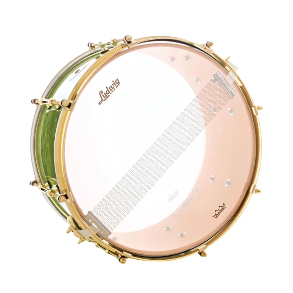 Introducing the Classic Maple Vintage 110th Anniversary Snare Drum. This snare is a throwback to the legendary late-’20s Ludwig look and feel. Handcrafted from select North American hard maple, the Classic Maple shell has been the foundation of the Ludwig sound for decades. It’s hand-sanded with 45-degree bearing edges and precision snare beds have been the inspiration for recreational and professional players alike. For this unique piece, Ludwig utilized jumbo flake pearloid wrap and brass-plated single-flanged hoops to deliver a retro look to match its classic tone. Low-mass tube lugs and a commemorative 110th Anniversary badge give this snare standout character worthy as a collectible or as a daily beater. Secure a little bit of Ludwig history with this 110th Anniversary snare drum.