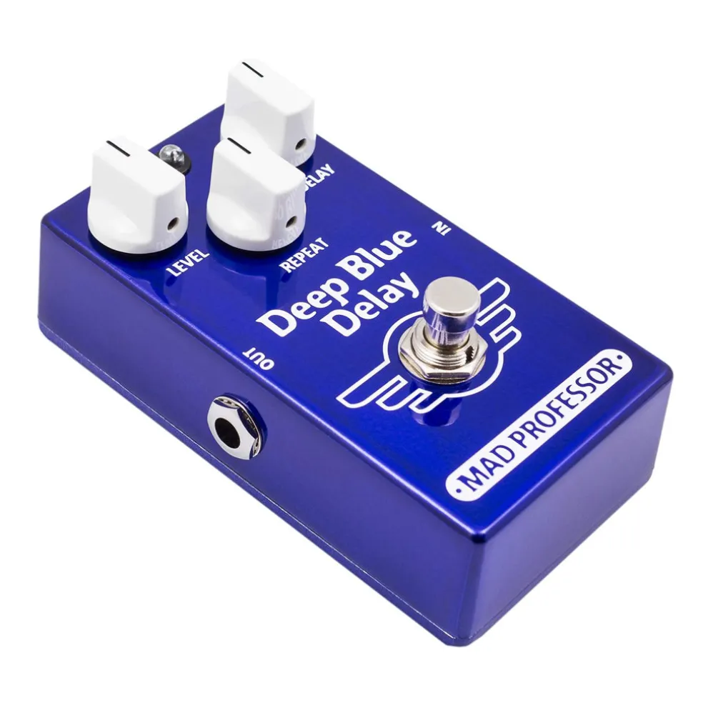 Deep Blue Delay is kept small (Width x Length x Height: 69mm x 111mm x 50mm including jacks and knobs) containing just the basic delay features; Delay Time, Delay Level and Repeat controls. It was designed to work as an ambiance delay; like that of a vintage tape echo and the repeat, the formation was specifically designed to allow easy setting and less critical setting of delay time. With delay times higher than 120ms, the delay time is sometimes set on the beat or on a multiple of the beat. Deep blue handles this by not giving full range repeats, but a tuned response that doesn’t need to be on the beat to sound good.