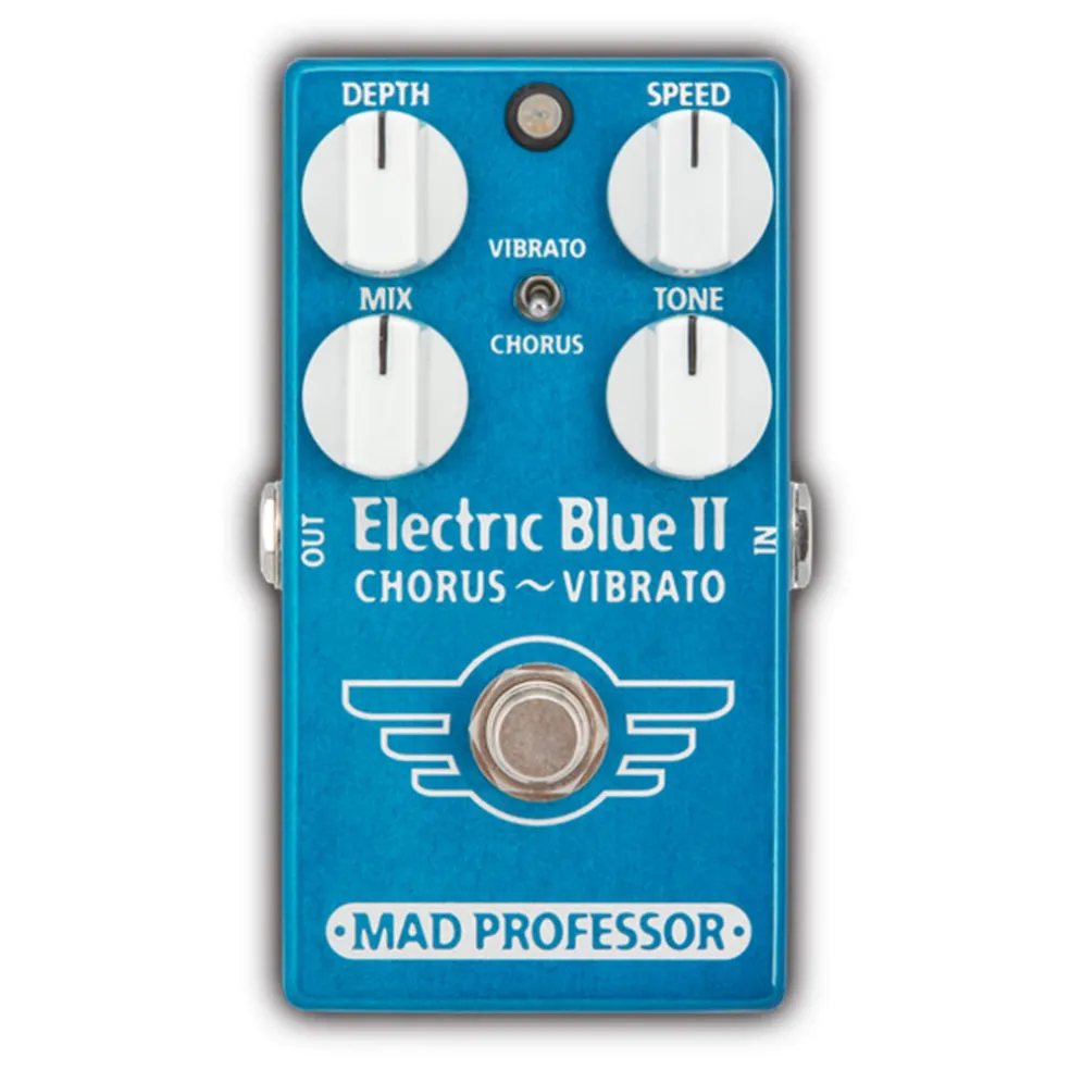 ELECTRIC BLUE II – Chorus Vibrato is a super high quality modulation pedal with a small footprint. It is simple-to-use yet surprisingly versatile. Vintage technology and modern engineering ensures the most organic and purest analog tone and ultra quiet performance. Electric Blue II is innovative and beautifully complex all analog bucket brigade design.