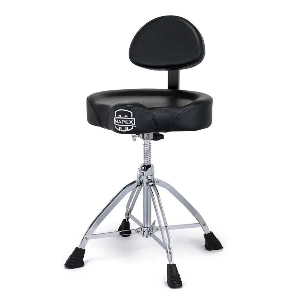 With its 17 x 4 saddle-style cushioned top and adjustable back rest, the T875 throne is the pinnacle of support and comfort. The sloped leg openings of the biomechanically shaped seat provide a free range of motion while the raised center and back edge help the player to maintain balance. The addition of a 4th oversize double-braced leg makes this throne extremely stable.