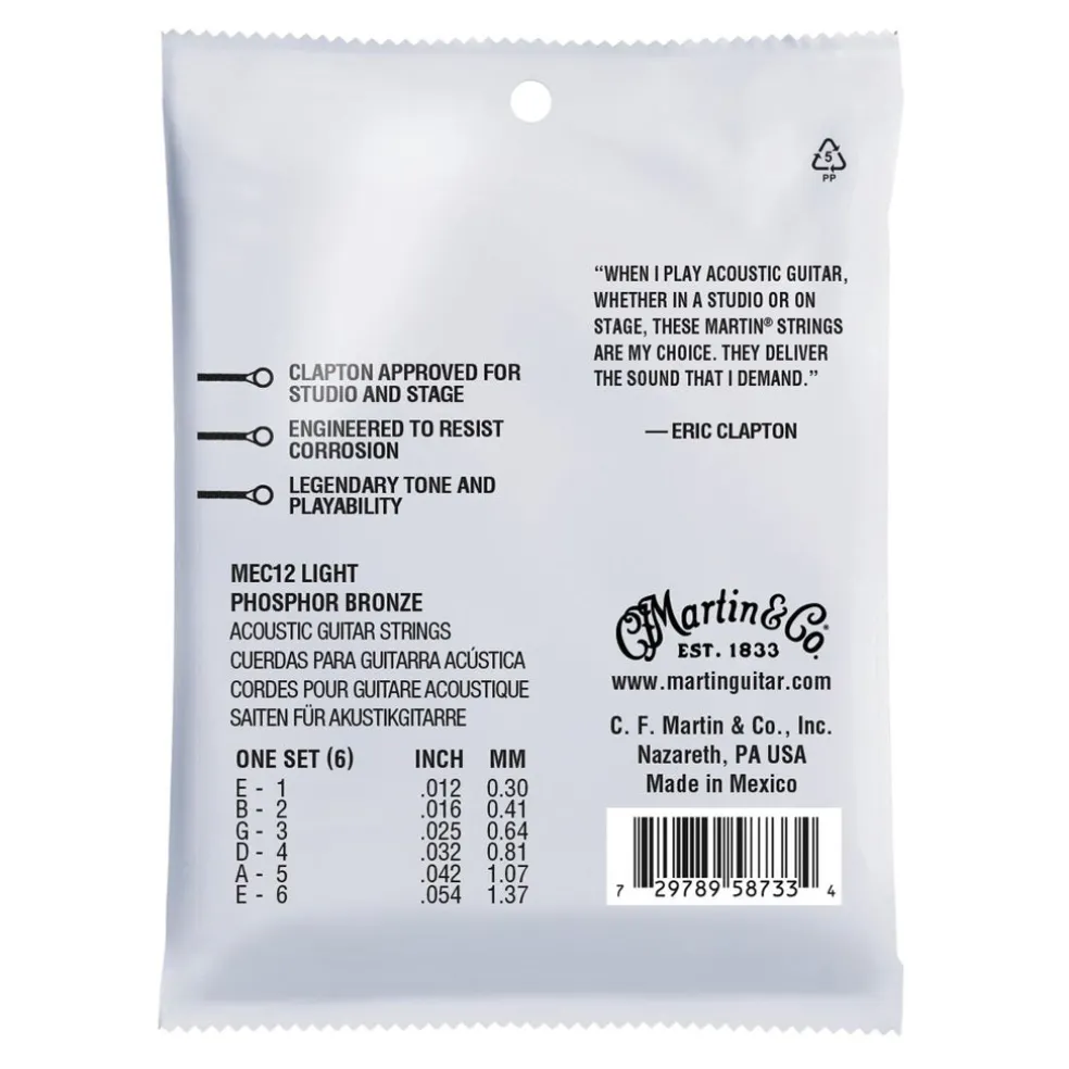 Martin Guitar MEC12 Clapton's Choice Strings 92/8 Phosphor Bronze Light