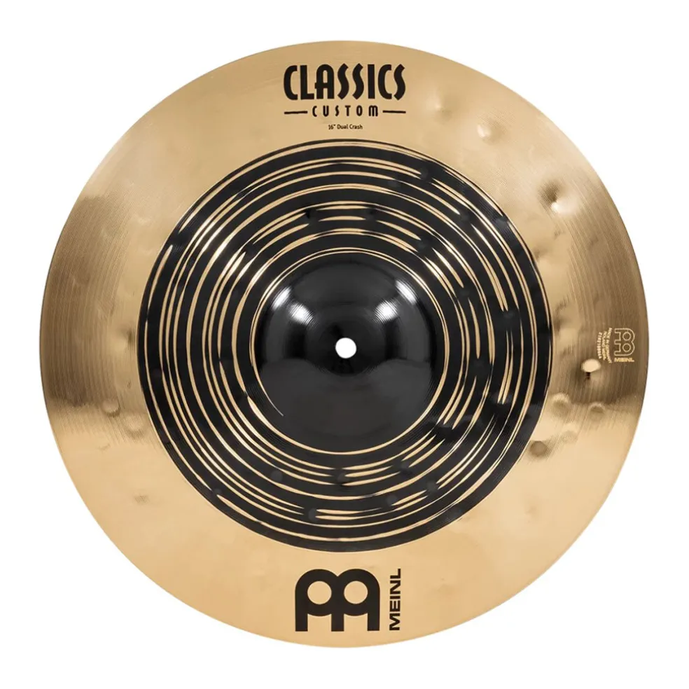 Quick and explosive attack with a dose of bright shimmer followed by a dark, short sustain. Visually striking surface treatment combines a dark finish center along with a fully lathed and buffed edge.