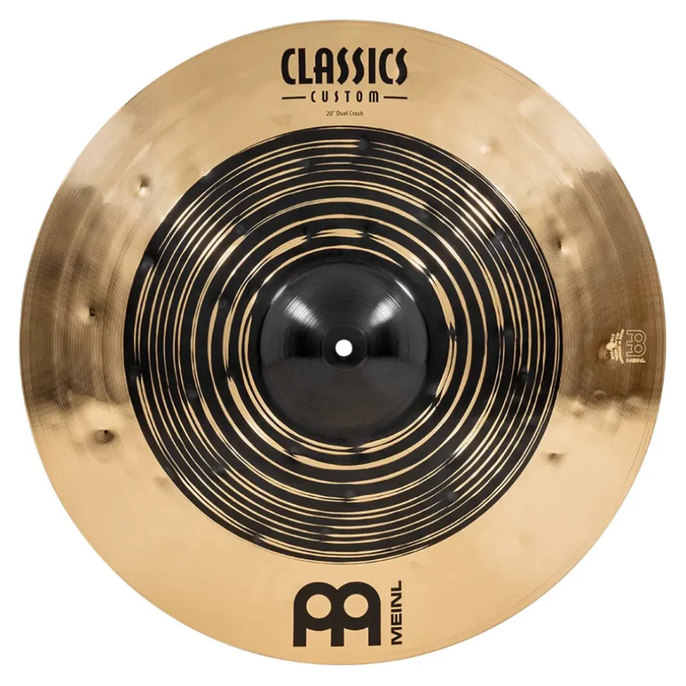 Quick and explosive attack with a dose of bright shimmer followed by a dark, short sustain. Visually striking surface treatment combines a dark finish center along with a fully lathed and buffed edge.