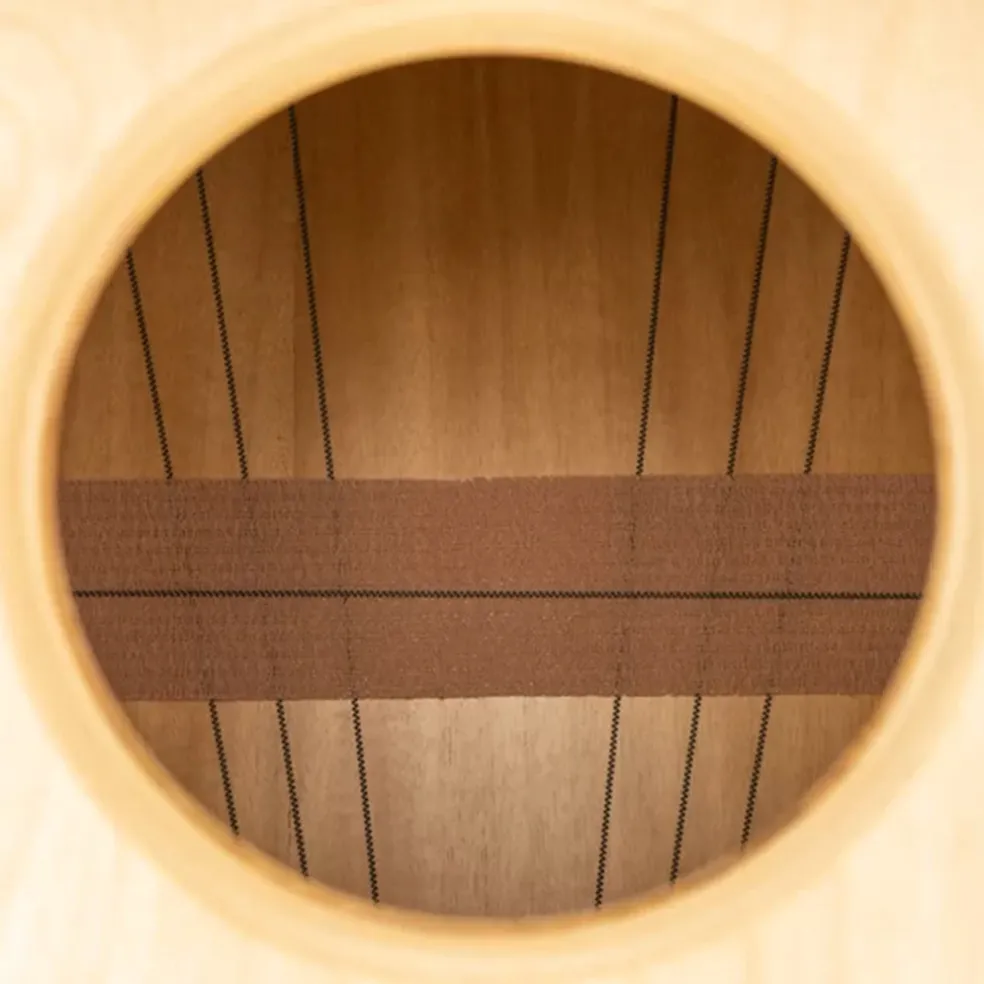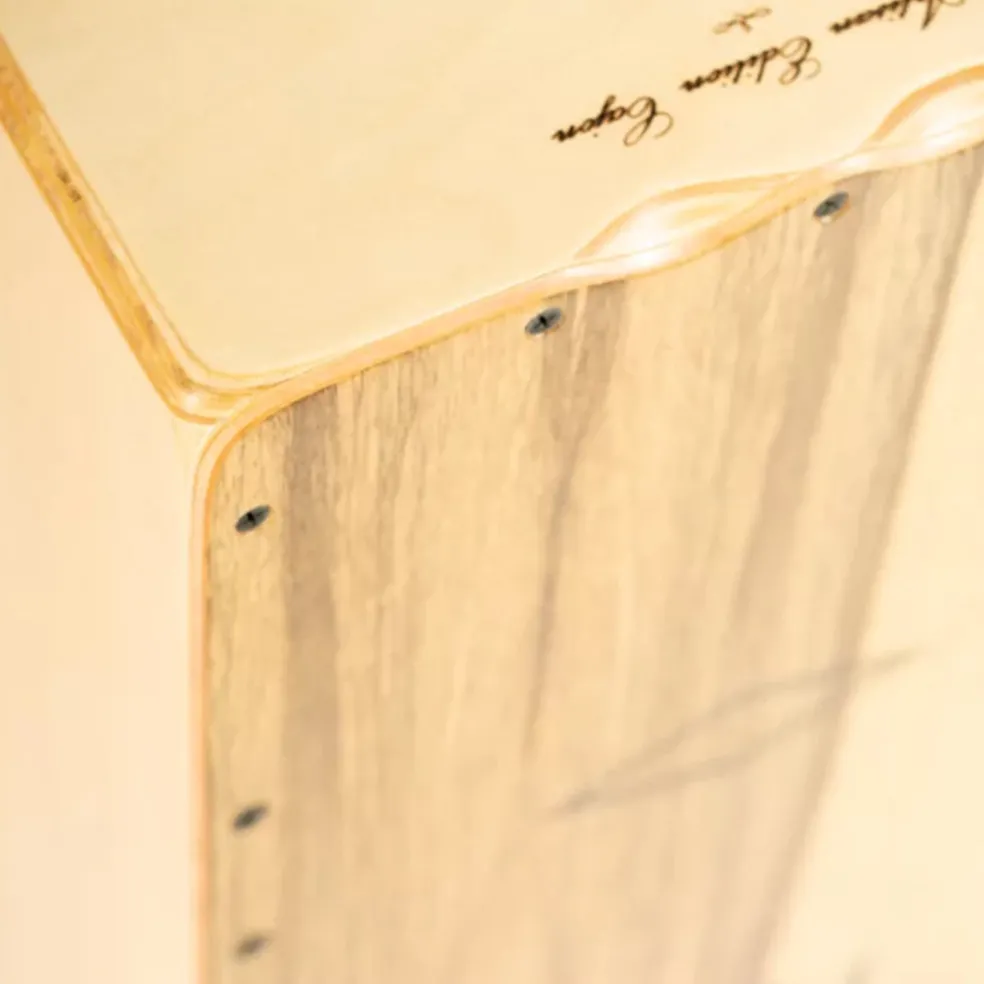 The Tango Line of artisan cajons have two groupings of three pre-tuned metal micro-coiled cajon strings that span across the inside of the playing surface for a crisp snare effect. These strings are hand-wound in the style of master cajon builder, José Pepote Hernández Diaz. Rounded corners and thumb notches on the top of the frontplate and resonating body optimize playing comfort and sound. The 7-Ply, 9mm thick Baltic Birch body develops the sound into a full, punchy tone that projects with clarity and warmth. Available with Limba or Light Eucalyptus finish frontplates. Made in Spain.