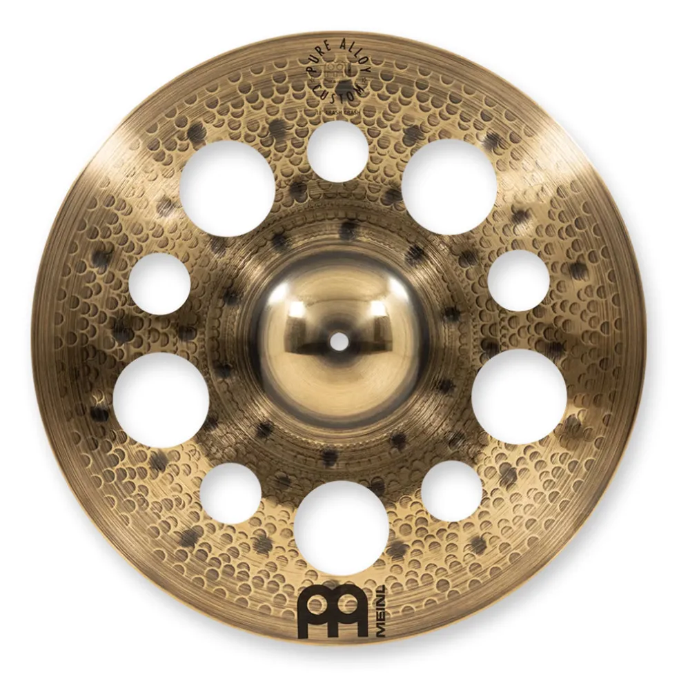 Featuring a custom smoked-bronze top and brilliant bottom, the Pure Alloy Custom Trash Crash features a medium thin weight in combination with different sized cut-outs. Brash crash sound with short sustain.