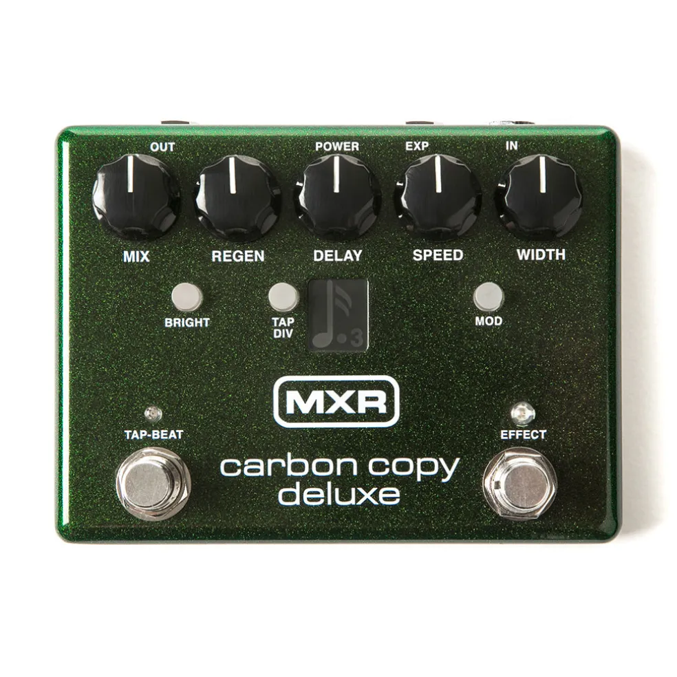 The Carbon Copy Deluxe Analog Delay adds a bevy of new features to fine-tune the warm, organic sound that has made the original the bestselling analog delay in the world. With extended delay time—now up to 1.2s—and tap tempo functionality, you now have more control over your Carbon Copy repeats than ever. The Tap Division feature, with an easy-to-read status display, gives you four different subdivisions: dotted 8ths, 8ths, triplets, and 16ths.