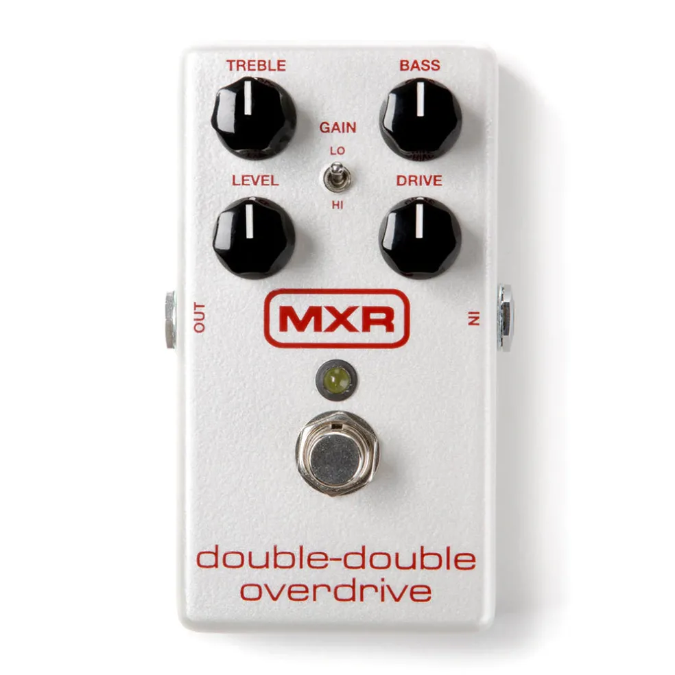 The MXR Double-Double Overdrive serves up two classic overdrives in a single housing. Changing between the two is as simple as a flick of the Lo/Hi switch: the Low Gain circuit belts out rich, fiery midrange tones while the High Gain circuit kicks up the gain and emphasizes highs and lows. Use the Treble and Bass controls to season your overdriven sound, and then crank the Level and Drive controls to turn the heat up to your liking. The MXR Double-Double Overdrive comes in a road-ready housing with true bypass switching