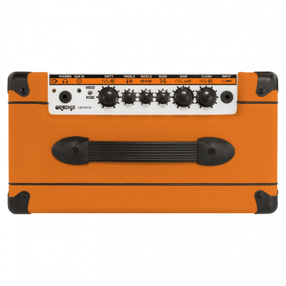 The twin channel Crush 20 takes an uncompromising approach to guitar tone and puts it in a compact and portable package. With footswitchable Clean and Dirty channels our new high gain, four stage preamp design serves up a huge palette of overdriven and distorted sounds, rich in harmonic overtones.