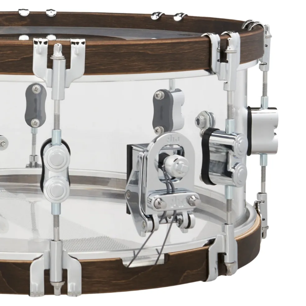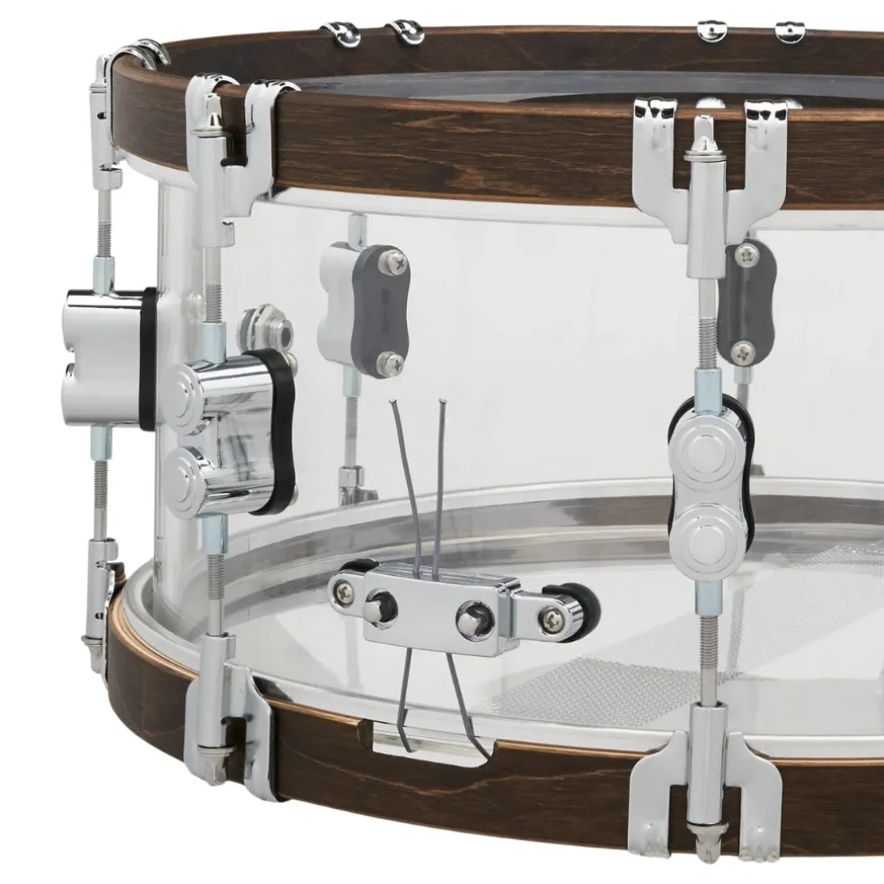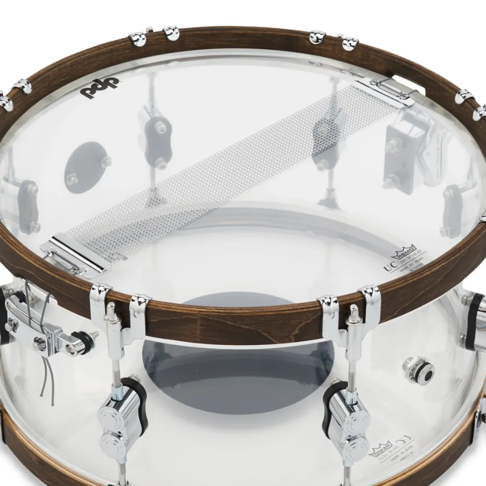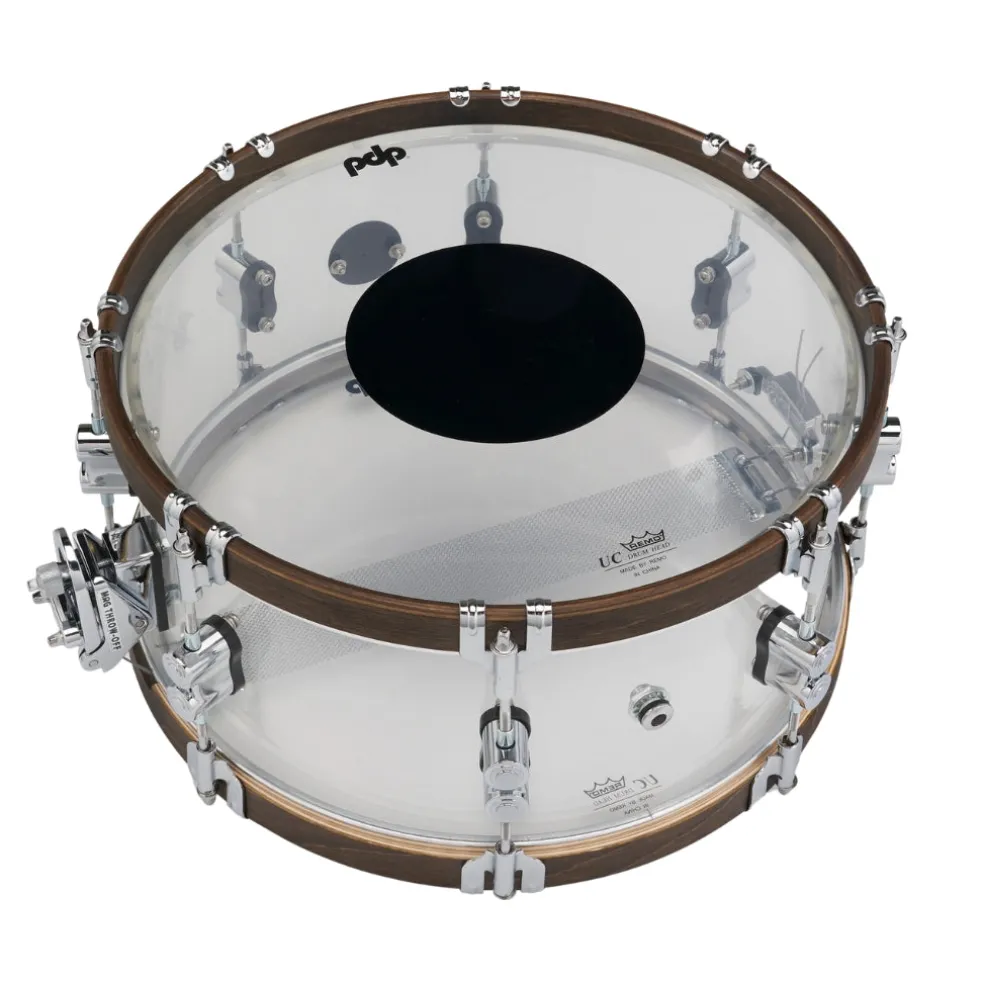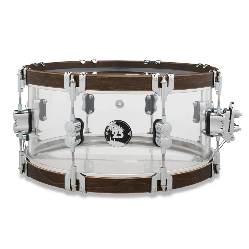 PDP is celebrating its 25th anniversary with special snare drums that are available for one year only! This snare, which is designed with a seamless 6.5-inch by 14-inch acrylic shell, is all about power and resonance, which makes it the ideal complement to PDP’s 25th anniversary shell pack. The distinctive walnut-stained wood hoops add a touch of earthiness to your cross-stick patterns and go beautifully with the well-resonating shell! No matter how hard you prefer to play, the hardware—classic claw hooks, elegant dual-turret lugs, and sturdy True-Pitch tension rods—ensures consistent tuning stability and rattle-free percussion in all performance settings. A rapid and capable genuine DW MAG throw-off mechanism completes the hardware puzzle, enabling quick modifications on the spur of the moment. Complete with a commemorative 25th anniversary badging, 20-strand snare wires, and a PDP-by-Remo black dot batter head, this joyful backbeat is ready for focus, snap, projection, and immaculate curb appeal. Seize yours before they are permanently gone.