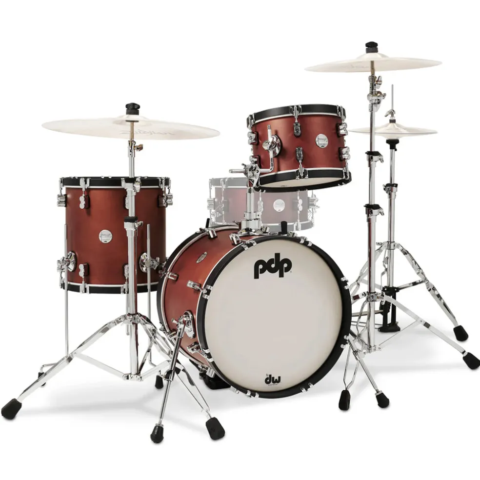 This PDP shell pack is sized for bebop jazz with 8×12′ mounted tom, 14’x14′ floor tom, 14’x18′ bass drum, and a 6000ULPK hardware (6300UL snare stand, 6500UL Hi Hat, 2x 6710UL cymbals stands).