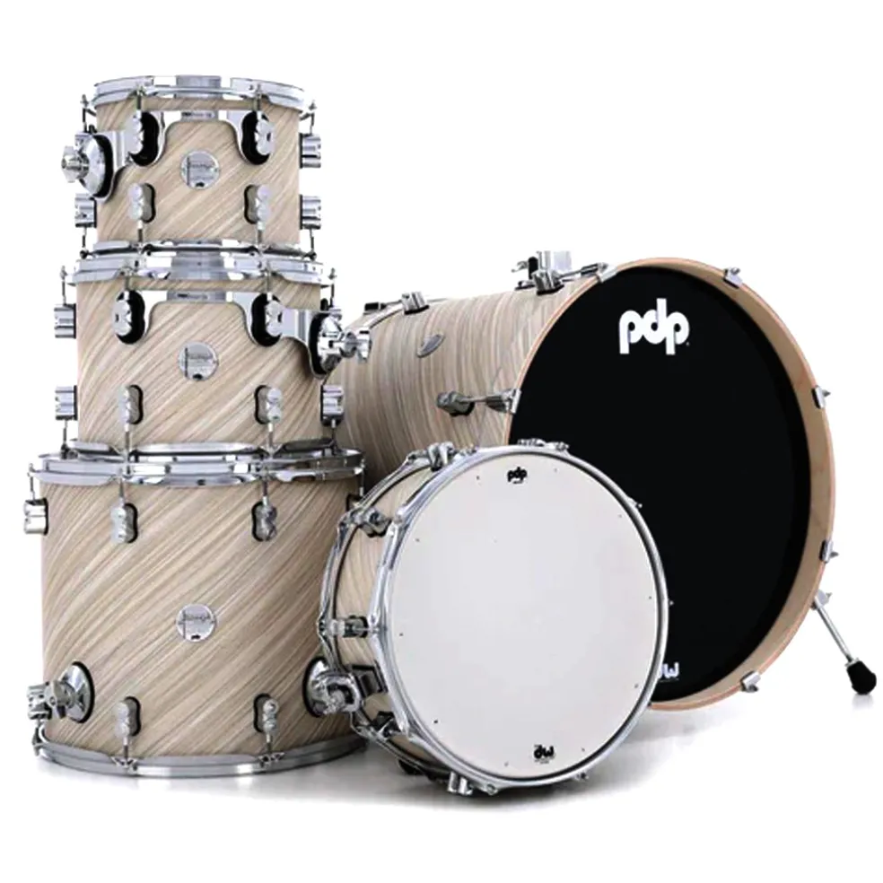 The PDP Concept Maple Series was designed by DW in California with custom-inspired spirit and fitted with hardware innovations for a high-end playing experience. These drums feature European Maple shells with punchy attack, warm and versatile tone with plenty of resonance. The 7-ply mounted toms feature DW’s patented Suspension Tom Mount system (STMs) to reduce tension and increase sustain, while the Concept bass drums are fitted with die-cast, low-mass claw hooks. The 10-ply Concept snares come standard with a trusted DW MAG throw-off, along with fully-chromed snare wires, featuring carbon steel coils and chrome end plates. These drums are fitted with graduated counter hoops, dual-turret lugs, and DW’s True-Pitch tuning rods with 20% more threads for enhanced tuning control. Each drum is fitted with Remo heads to ensure they’re ready to play out of the box.