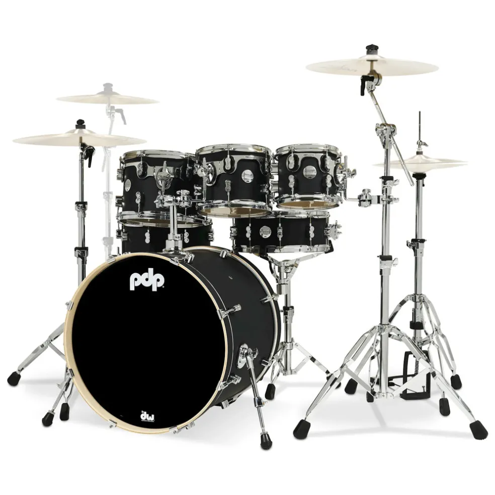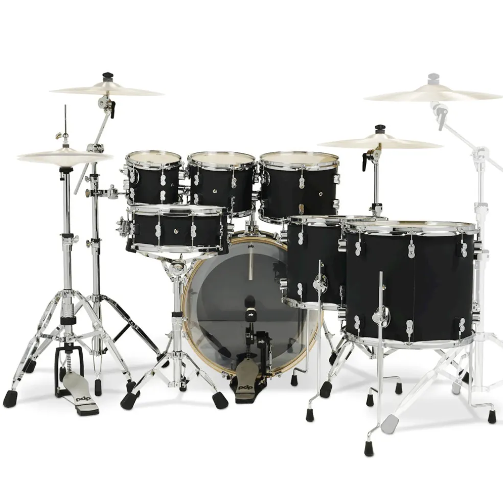This 7-piece PDP shell pack is sized for arenas with 7×8′, 8×10′, and 9×12 mounted toms, 12×14′ and 14×16′ floor toms, 5.5×14 snare, 18×22′ bass drum, and an HW815 hardware (PDSP400 Single Bass Drum Pedal, PDSS800 Snare Stand, PDHH800-01 3-Legged Hi-Hat Stand, PDCS800 Straight Cymbal Stand, PDCB800 Boom Cymbal Stand).