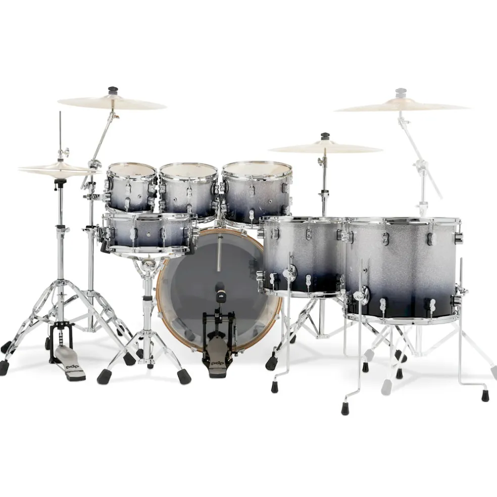 This 7-piece PDP shell pack is sized for arenas with 7×8′, 8×10′, and 9×12 mounted toms, 12×14′ and 14×16′ floor toms, 5.5×14 snare, 18×22′ bass drum, and an HW815 hardware (PDSP400 Single Bass Drum Pedal, PDSS800 Snare Stand, PDHH800-01 3-Legged Hi-Hat Stand, PDCS800 Straight Cymbal Stand, PDCB800 Boom Cymbal Stand).