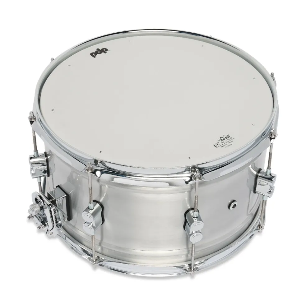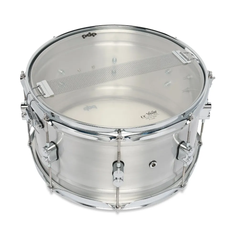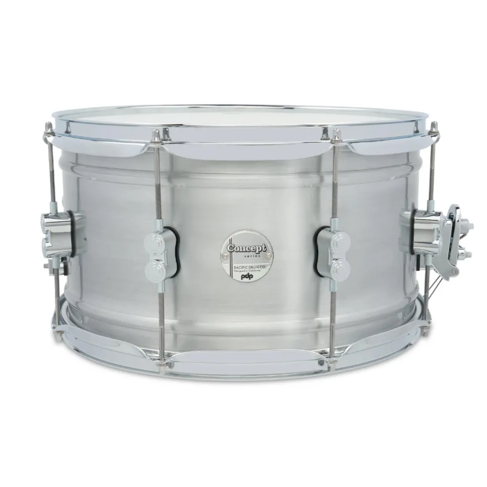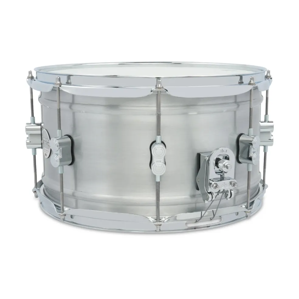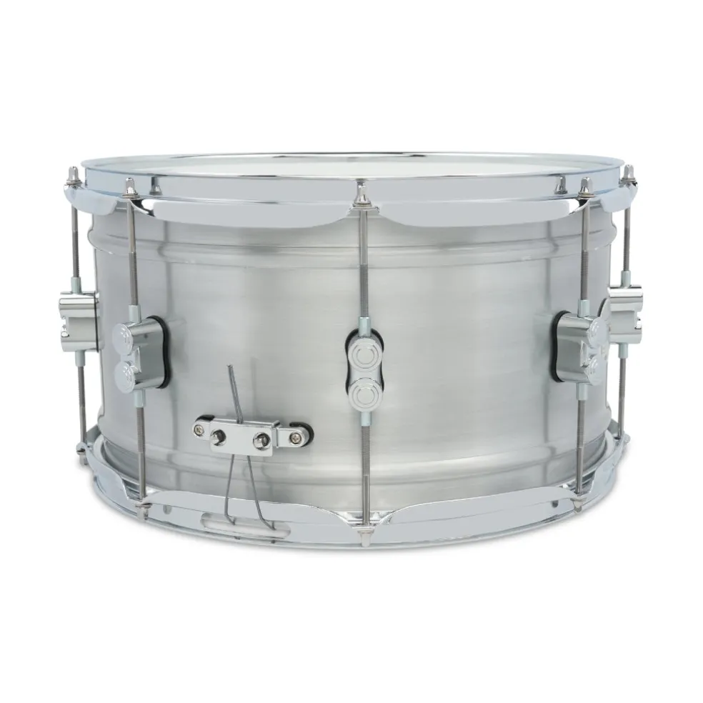The Concept Series Aluminum snare drum features a rolled and doubled-beaded thinner 1.2mm aluminum shell for lower tone, which is brushed for a satin finish. Aluminum shells are a unique sonic alternative to stainless steel and offer a similar round attack and musical overtones, but with a much drier resonance. The chrome hardware is fitted with stylish dual-turret lugs and high-end DW appointments like a MAG Throw-off’, True-Pitch Tuning’ rods, and Remo heads.