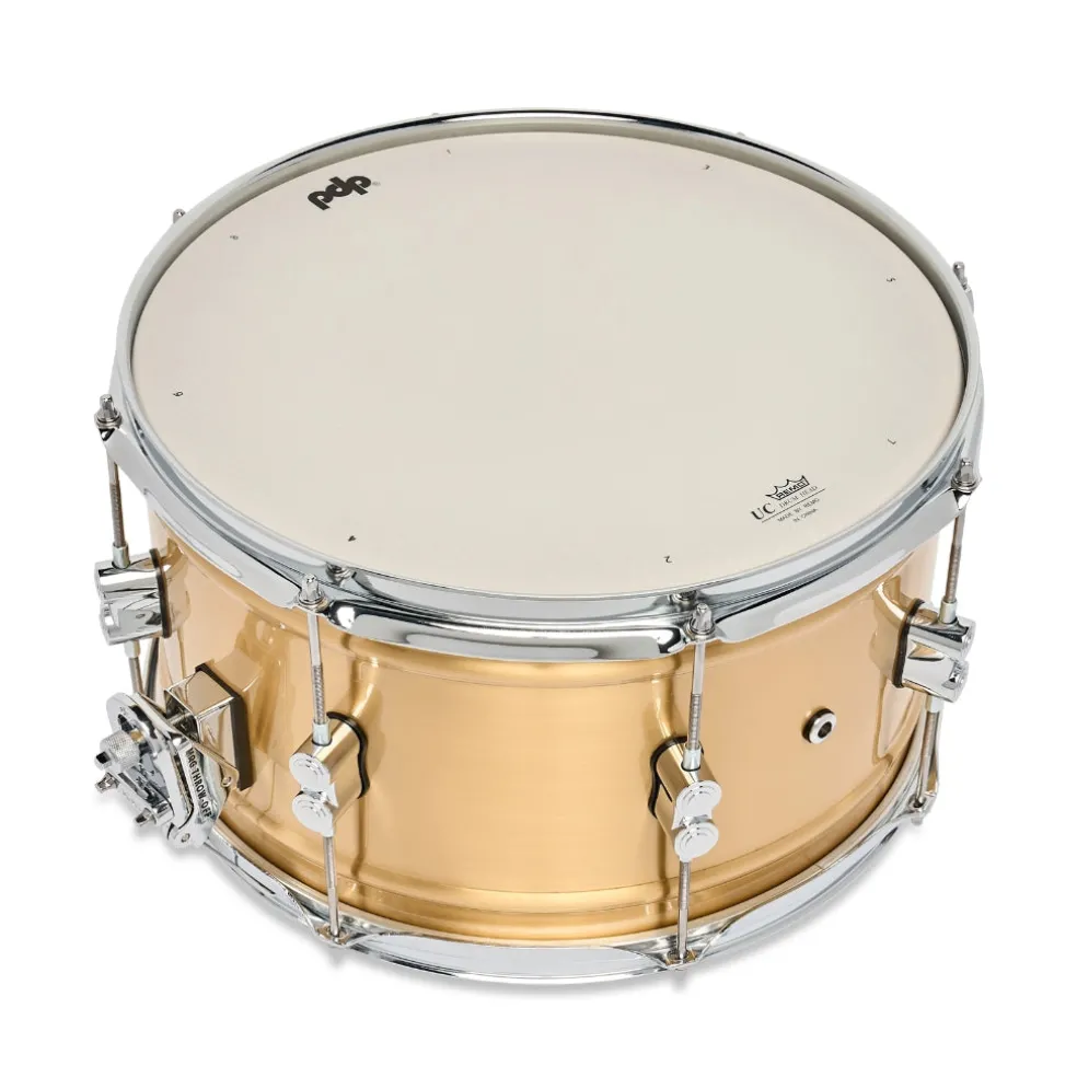 This Concept Series Brass snare drum offers a rolled and double-beaded brass shell with a brushed exterior for a bold, vintage-style satin vibe. This 1.2mm Brass shell produces lower tone from a thinner shell, while pumping out heavy attack and a wide tuning range suitable for various musical styles. The hardware offers stylish dual-turret lugs and high-end DW appointments like a MAG Throw-off, True-Pitch Tuning rods, and Remo heads.