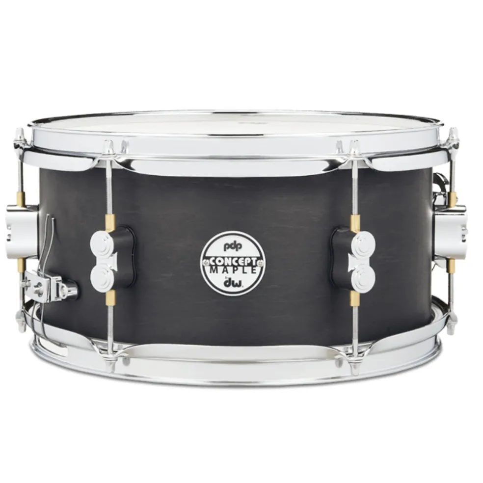 The PDP 6 x 12 Concept Black Wax Maple Snare Drum is named after the hand-applied wax sealant that protects the natural exterior and produces that dark, earthy matte surface. Maple is a popular wood for snare drums because it is warm and naturally EQ’d, with balanced lows, mids, and highs.