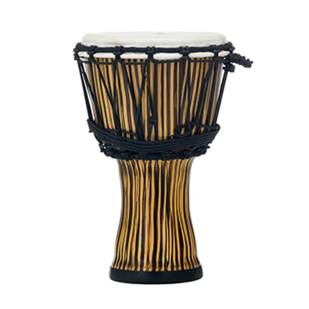 Care Guide: Pearl Rope Tune djembe feature a synthetic shell that is subject to react to extremely hot conditions. Refrain from prolonged exposure to temperatures at or above 122°F / 50°C. Failure to do so may result in damage to the instrument. For the utmost in care, we recommend a moderate stable climate suitable for humans.