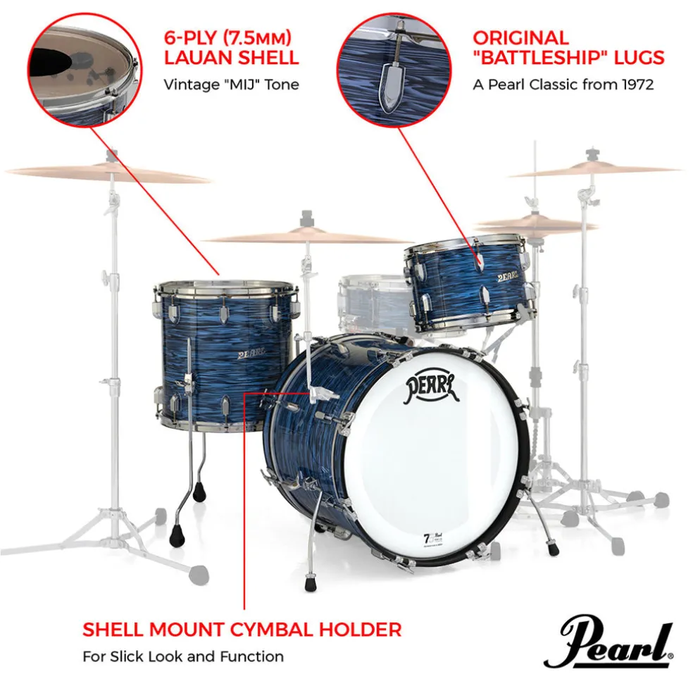 Like driving a classic car with a supercharged engine, President Series Deluxe plays like a vintage kit without the shortcomings of yesterday’s fittings. Our original Battleship lug has been recast and each drum features adjustable tone mufflers, allowing sonic variety from subdued to bombastic. In addition, the elegant identity of Pearl’s original script badge and classic bass drum logo augment the swirling flash of our new Ripple covered finishes.