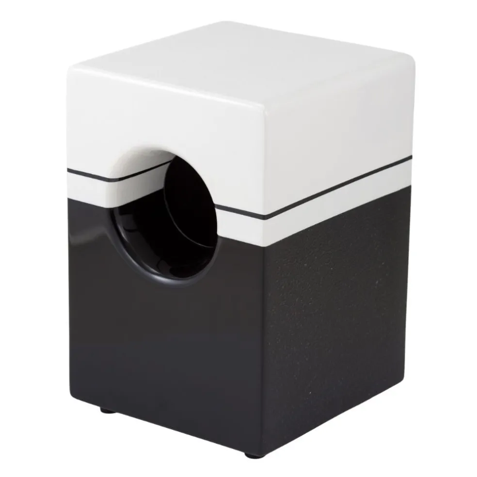 This cajon is modeled after Pearl’s Boom Box Cajon, it features a fixed snare system and built-in bass port for enhanced low end sound. Topped off with a classy black and white design, this cajon will look great and sound even better!