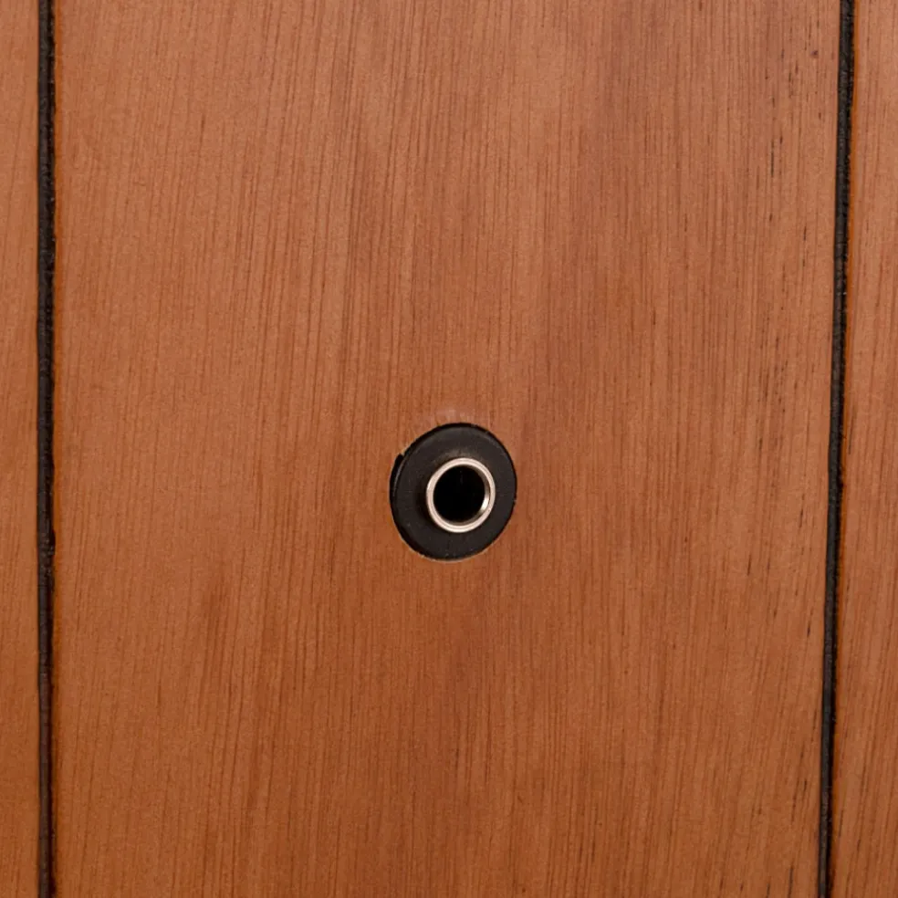 The Pearl Electric Crate Cajon includes a Piezo Trigger and 1/4 Jack so you are ready to plug and play. The body of this e-Cajon is constructed using Shorea plywood and has a crate design that features a meranti faceplate. Meranti is a wood known for its relative hardness and straight grain making it ideal for cajons. A built-in bass port magnifies the massive low-end tone of the Cajon while two sets of fixed snare wires provide a bright, crisp snare response. Whether you are plugged in or playing acoustic the Electric Cajon has a great bass sound.