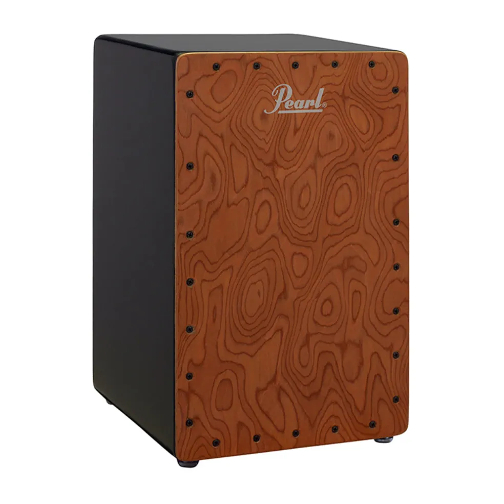 The Figured Cherry Cajon features a stunning figured Cherry faceplate. Cherry is a fine grained hardwood with darker wavy streaks. Because of its hardness, tonally cherry is a close match to maple and when used on a cajon provides more bottom-end.