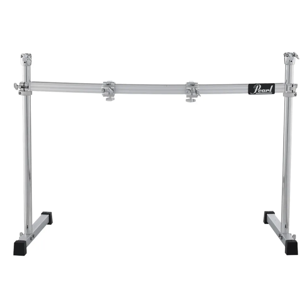 The Pearl DR501C drum set rack features only a front section of the famous DR503C with a curved bar. Equipped with two PCX100 clamps and two PCL100 pipe clamps that attach to the tops of the vertical legs to accept tom holders or cymbal holders. The Pearl DR501C drum rack dimensions: 34 Rack legs with a 1.5 diameter, 20 long Rack feet and a 44 Rack bar.