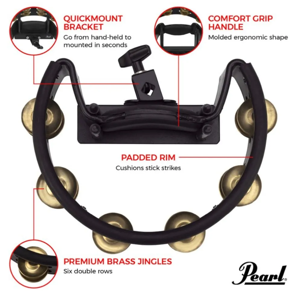 - Pearl’s QuickMount holder that allows the tambourine to go from mounted to hand-held with a flick of your wrist