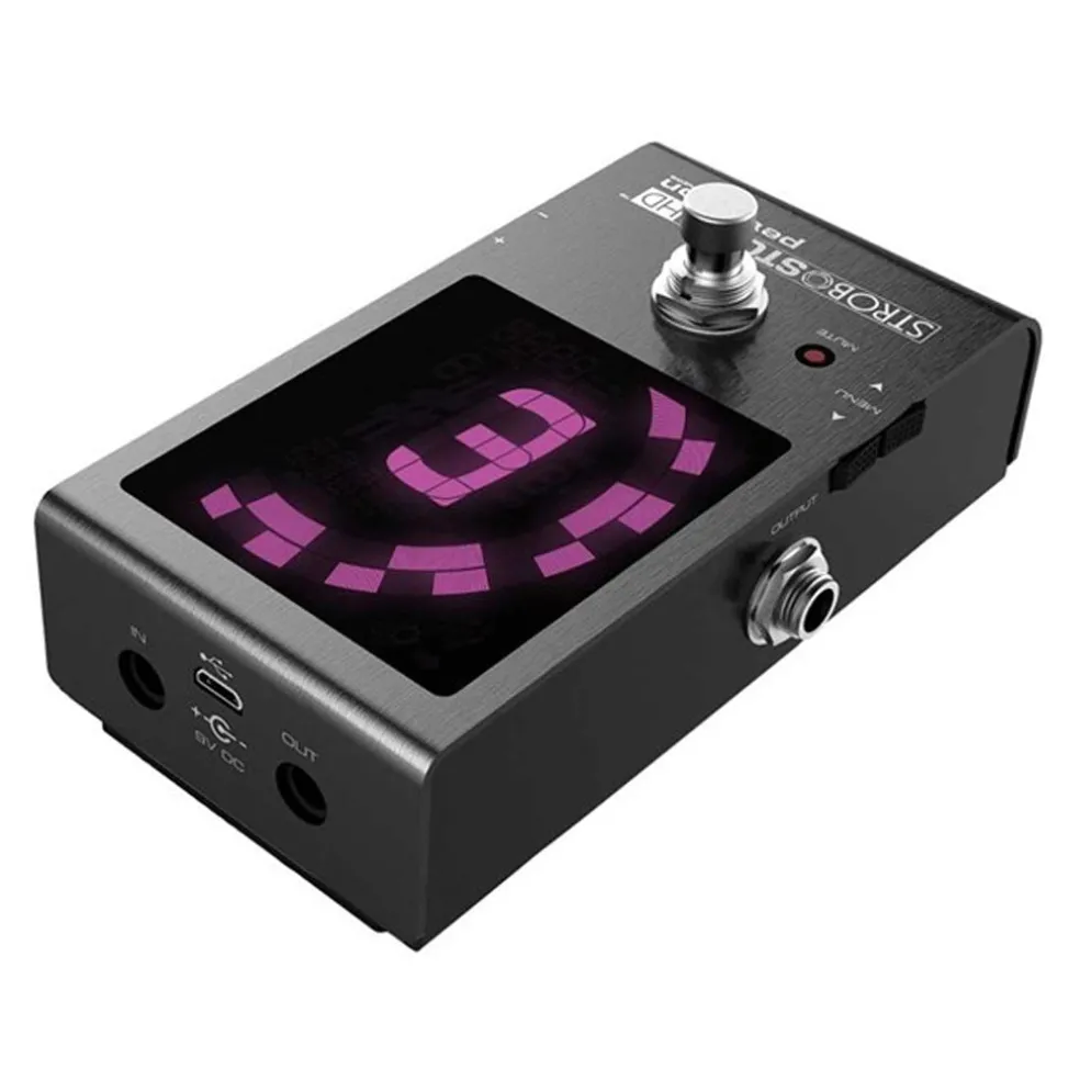 Featuring the largest tuning display Peterson Tuners has ever incorporated into one of their pedal tuners, the StroboStomp HD boasts a high-definition, LCD screen that incorporates a variable color LED backlight. The user-selectable colors can be used to personalize the tuner or to increase display viewing quality in different levels of ambient lighting depending on the usage environment. The vibrant screen colors can also be assigned to stock or user presets to significantly reduce menu navigation time and increase on-stage tuning confidence at the gig.