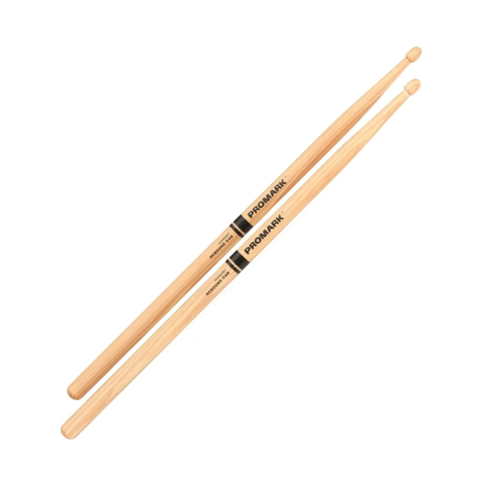 The ProMark Rebound 5AB drumstick features an acorn tip shape and a long taper, producing a rear-weighted feel that is ideal for agility. The 5AB diameter measures .580″, sitting just between 5A and 5B sticks.