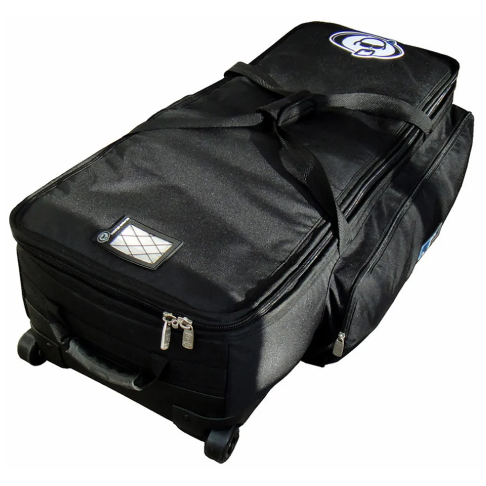 The Protection Racket 28 x 14 x 10 drum hardware bag with wheels is perfect if you have a small setup. Comes with retractable handle and high quality replaceable polyurethane skateboard wheels.