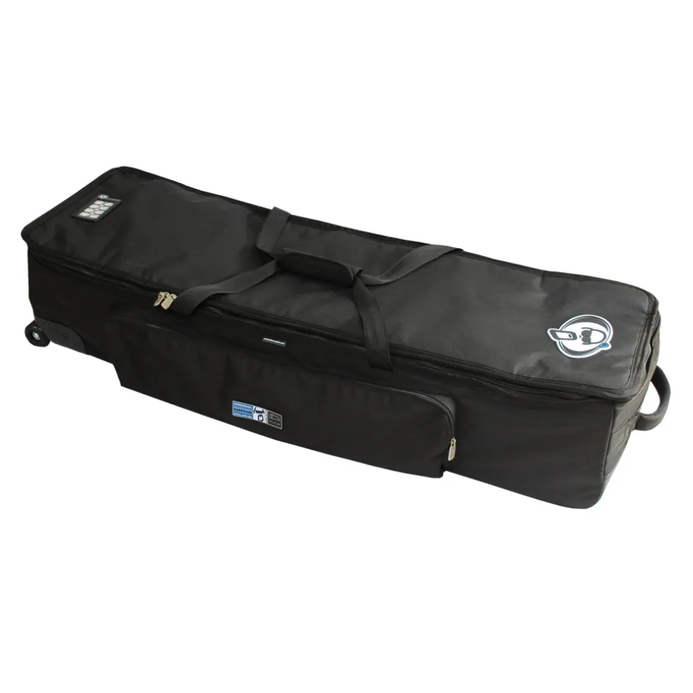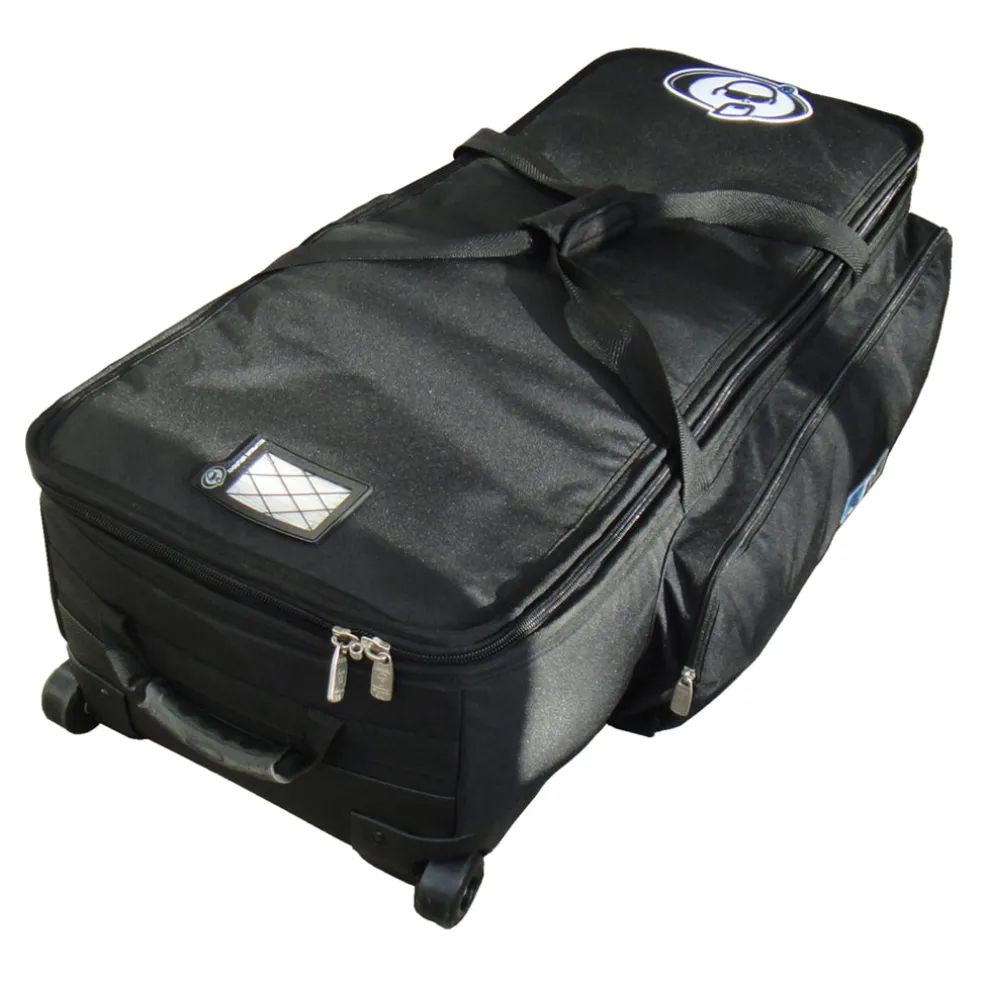 The Protection Racket 47 x 14 x 10 hardware bag wheels will comfortably house a full 5 piece kits worth of hardware. Comes with retractable handle and high quality replaceable polyurethane skateboard wheels.