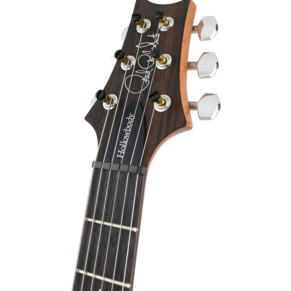 This PRS Hollowbody provides a beautiful mid-forward response, with a particularly acoustic and big resonant neck pickup. This guitar feels great, inspires noodling the nights away at home or on stage.