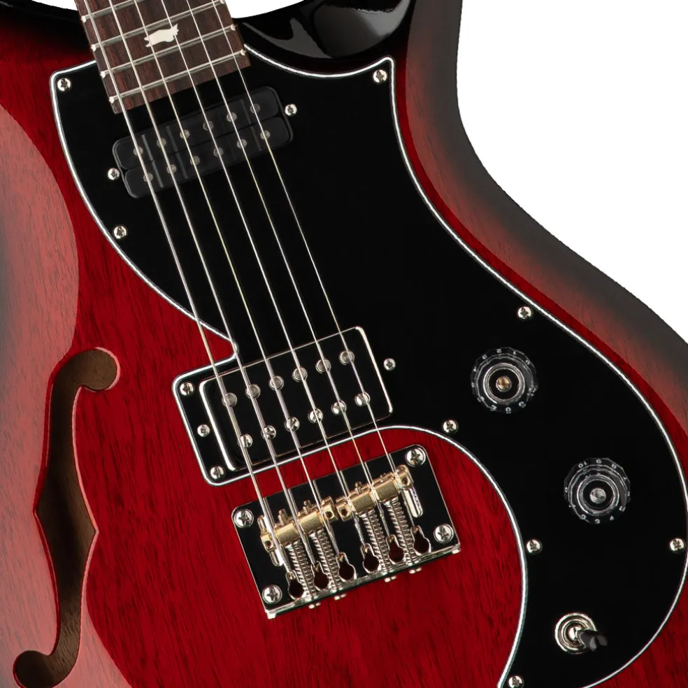 The S2 Vela Semi-Hollow is a vintage-inspired guitar with loads of personality and tonal textures. Its offset body shape is at once elegant and edgy, and the addition of a semi-hollow body and f-hole gives the Vela added attitude and resonance.