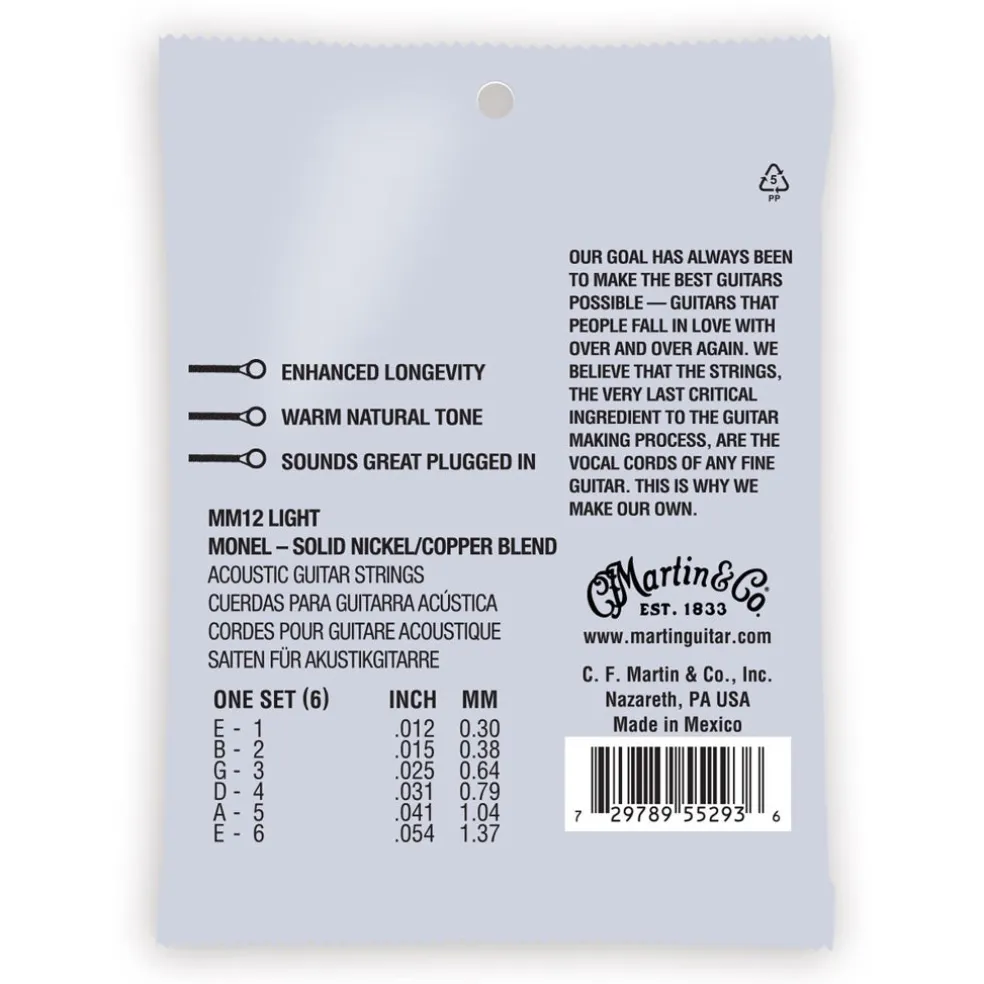 Martin Retro® strings are the real deal. Not an imitation. With Martin Retro® strings, you get one tough set that offers true, consistent tone and sounds like nothing else on the market. Martin’s solid nickel/copper alloy blend provides a reduced pick attack that allows the guitar’s tonewoods to be heard, not overshadowed. Martin’s proprietary Monel wrap wire is naturally corrosion resistant, so you can play them for a long time with nothing to get in the way of your music. Discover your guitar’s true voice. Retro® strings offer enhanced longevity with warm natural tone, and they sound great plugged in.