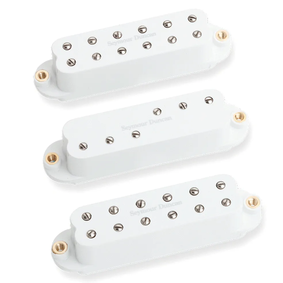 - Ultra versatile single coil sized humbucker set for Strat, consisting of a JB Jr. bridge, Duckbucker middle, and Little 59 neck
