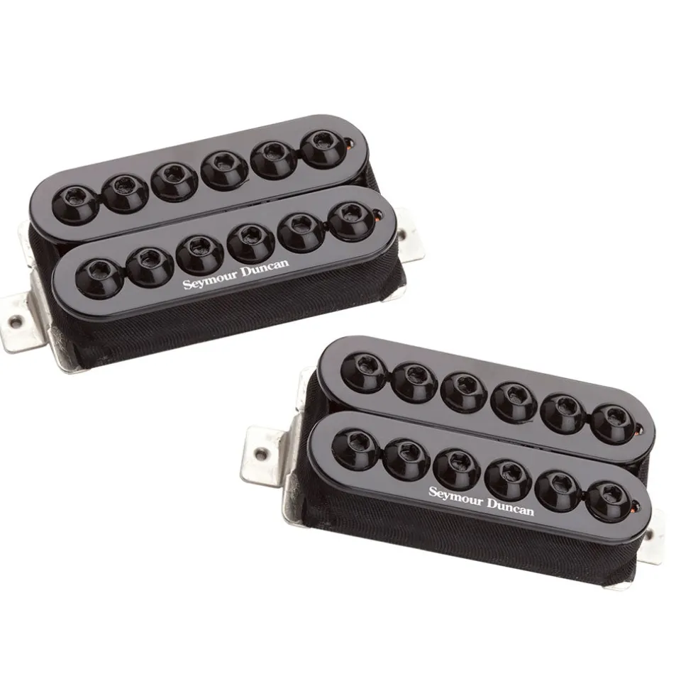 The Invader delivers the thickest, deepest low-end response of any passive pickup we make. Chords sound almost subsonic with lower tunings, but balance nicely with the crunchy treble, keeping everything well defined. While the Invader bridge looks mean and vicious, because it is mean and vicious, the Invader neck humbucker is surprisingly warm and smooth, despite its intimidating looks, and yields a thick crunch and moaning sustain.