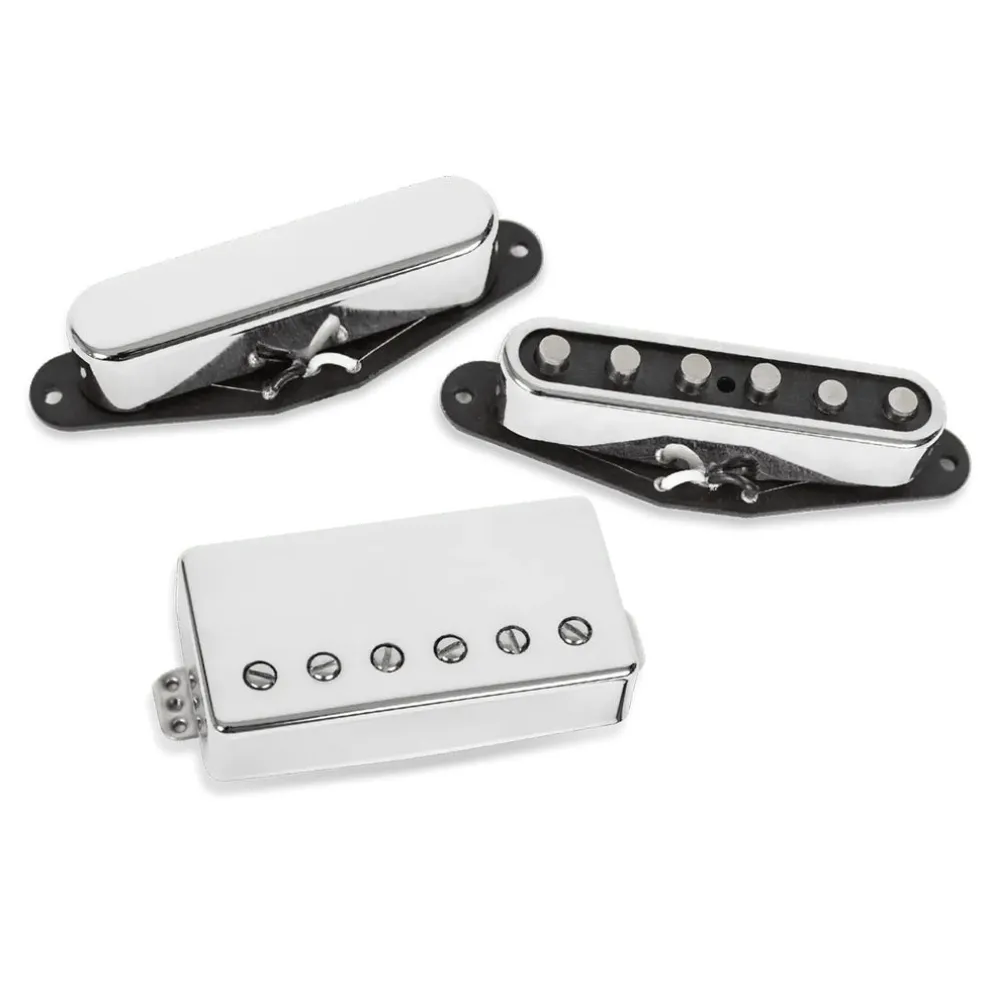 When she needed pickups that would showcase her technical and melodic playing, Lari Basilio came to Seymour Duncan to collaborate on a signature set. The results are a Tele®-style single coil neck pickup with a unique middle pickup, which is Strat®-style voiced in a Tele®-style rhythm-sized footprint. Single coil chime is supported by a punchy humbucker in the bridge that delivers clarity for even the most clustered chord voicings. Both single coils feature Alnico 5 magnets under the low strings. Alnico 4 magnets sit under the high strings of the neck pickup, and Alnico 2 magnets are under the high strings of the middle pickup. These moderate output pickups become increasingly versatile with more sophisticated wiring configurations.