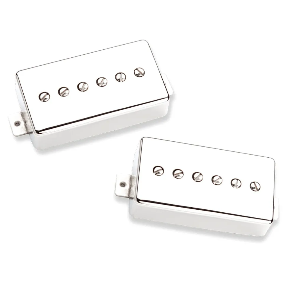 You need a humbucker sized P90 Phat Cat Set. The Phat Cat is a true single-coil P90 Soapbar retrofitted under a humbucker cover for use in humbucker-equipped guitars. Seymour Duncan originally developed this pickup in their Custom Shop for Hamer Guitars, but eventually the demand became so great that they moved it to regular production. The Phat Cats give you all the authentic grit and growl that you’d expect from a great vintage P90 Soapbar in the bridge position, and the authentic P90 bounce and sparkle in the neck position. Chords have bright, ringing harmonic overtones while solos have that classic P90 cut and edge.