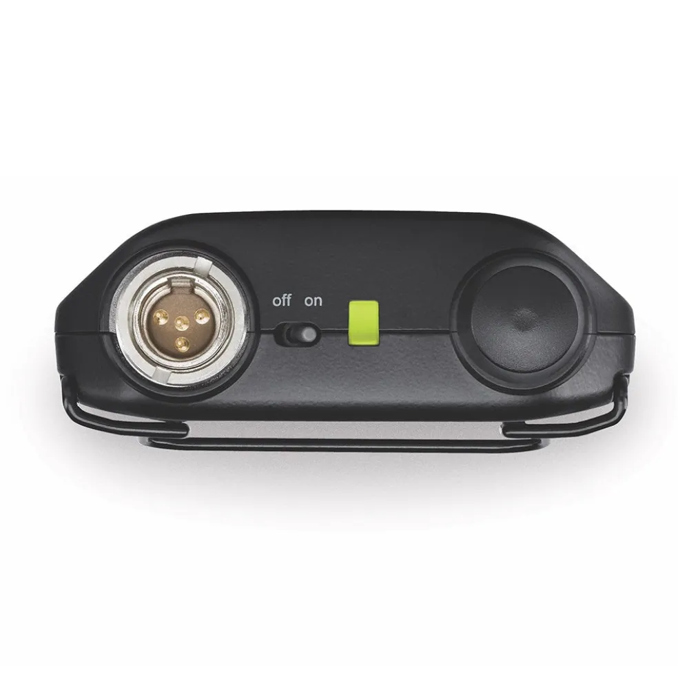The GLXD1+ Dual Band Bodypack Transmitter has rugged, metal construction with ergonomic design and reversible belt clip to fit comfortably and snugly in various positions. Compatible with instrument cable, and a variety of headset and lavalier microphone options.