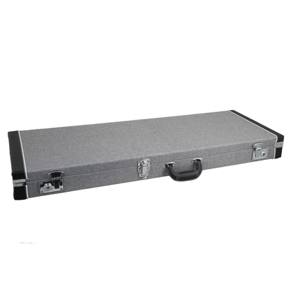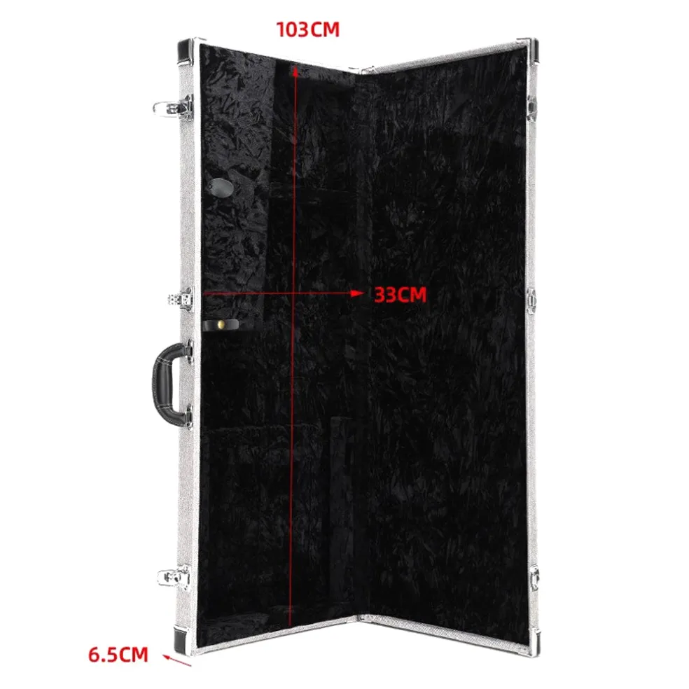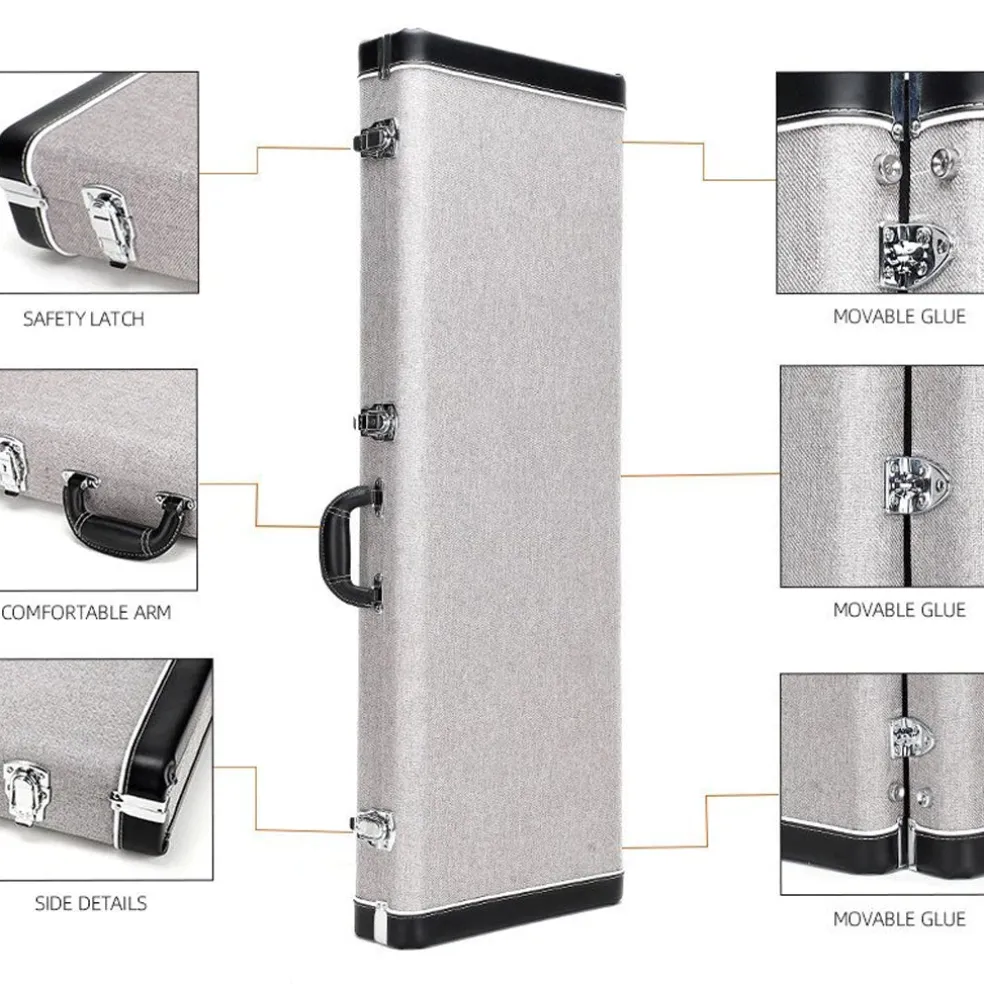 Electric guitar wooden case widen the contact surface large capacity. The main materials of WC33 is wooden and sheep leather and the binding is wood with leather sewing. In the production process, details are handled by hand, so it is very important to get the details right. Its exterior cover is sheep leather and 5mm plywood and inside is black crush velvet.