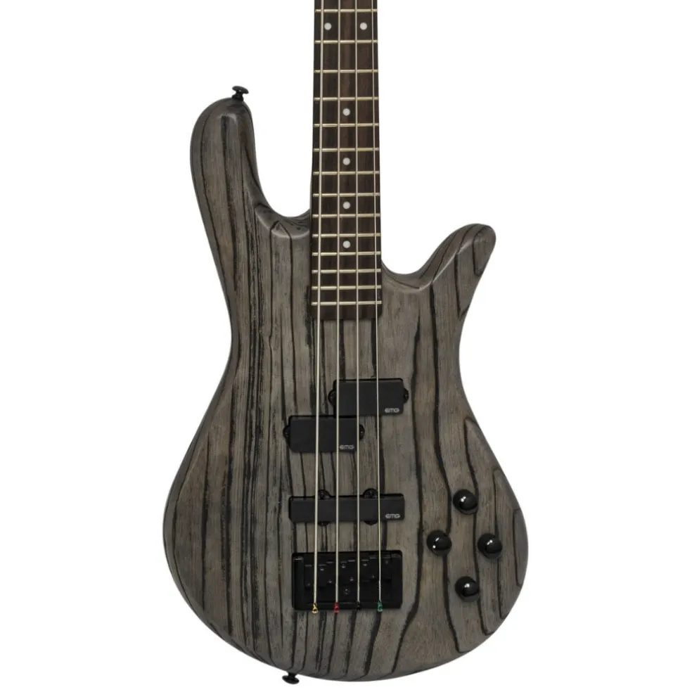 The NS Pulse II represents the core of Spector’s iconic design. The three-dimensionally carved body is a trademark of the Spector brand and provides a uniquely comfortable playing experience for all bassists. The NS Pulse II basses feature a highly figured Quilted Maple top and Swamp Ash body paired with a three-piece Roasted Maple bolt-on neck, complete with a Macassar Ebony fingerboard. The roasting process results in a neck that provides enhanced stability & resonance, while the Macassar Ebony fingerboard ensures clear note definition and projection. This model is also equipped with EMG active pickups and the Spector TonePump Jr. active pre-amp. This combination yields a range of impressive & aggressive noise-free tones. Additional features like a locking bridge, illuminating side dots, and a custom 12th fret inlay round out an already impressive feature set. NS Pulse II basses are available in three distinct colors, Black Cherry, Black Stain, and Ultra-Violet, each with a durable matte finish.