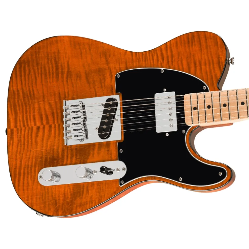 A superb gateway into the time-honored Fender® family, the Squier® Affinity Series™ Telecaster® FMT SH delivers legendary design and quintessential tone for today’s aspiring guitar hero. This Tele® features several player-friendly refinements such as a thin and lightweight body with an eye-catching flame maple top (FMT), a slim and comfortable “C”-shaped neck profile, a string-through-body bridge for optimal body resonance and sealed die-cast tuning machines with split shafts for smooth, accurate tuning and easy restringing. Loaded with a Squier single-coil bridge pickup and humbucking neck pickup for genre-defying sonic variety, this model is ready to accompany any player at any stage.