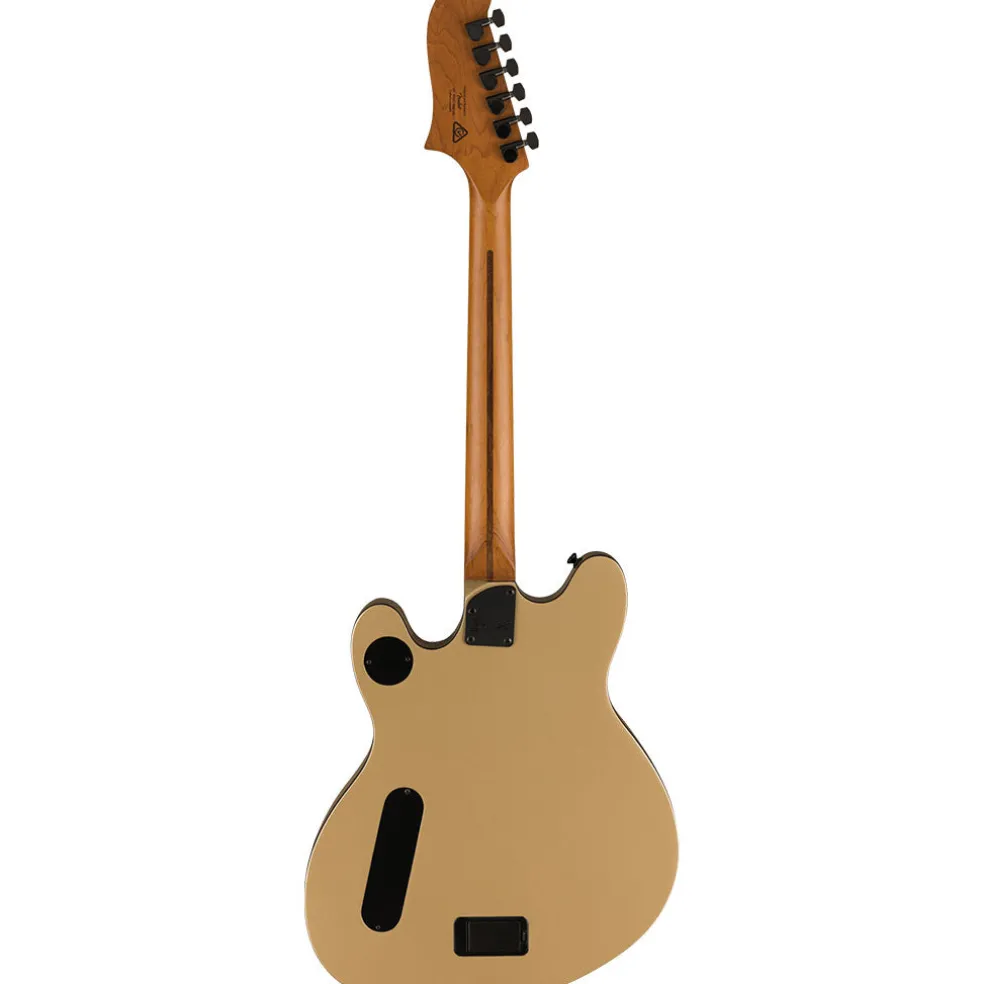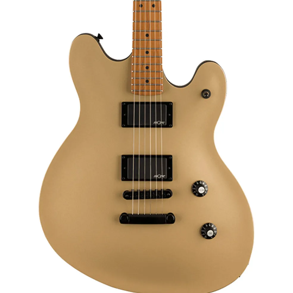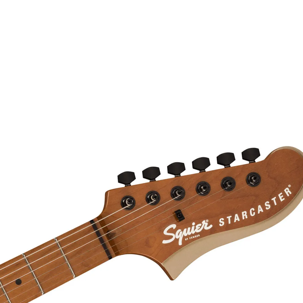 The Starcaster broke the mold of semi-hollow guitar design with its offset body shape when it was introduced in the ‘70s, offering versatile sounds and out-of-this-world styling for the most adventurous players. The Squier® Contemporary Active Starcaster® is an evolution of the original Fender model, engineered with a sealed semi-hollow body for minimized feedback and powered by dual Squier SQR™ active ceramic humbucking pickups for massive high-output signal. The roasted maple neck was chosen for its optimal tone and stability, and a sculpted heel design allows for improved access all the way to the 22nd fret. High-performance components round out the feature list and include a fully adjustable bridge with stop tailpiece for rock-solid string feel, and a set of sealed-gear tuning machines with split shafts for smooth tuning action and easy restringing. Eye-catching styling cues include stealthy black chrome hardware and a sleek matching painted contoured headstock with chrome logos for a premium look.
