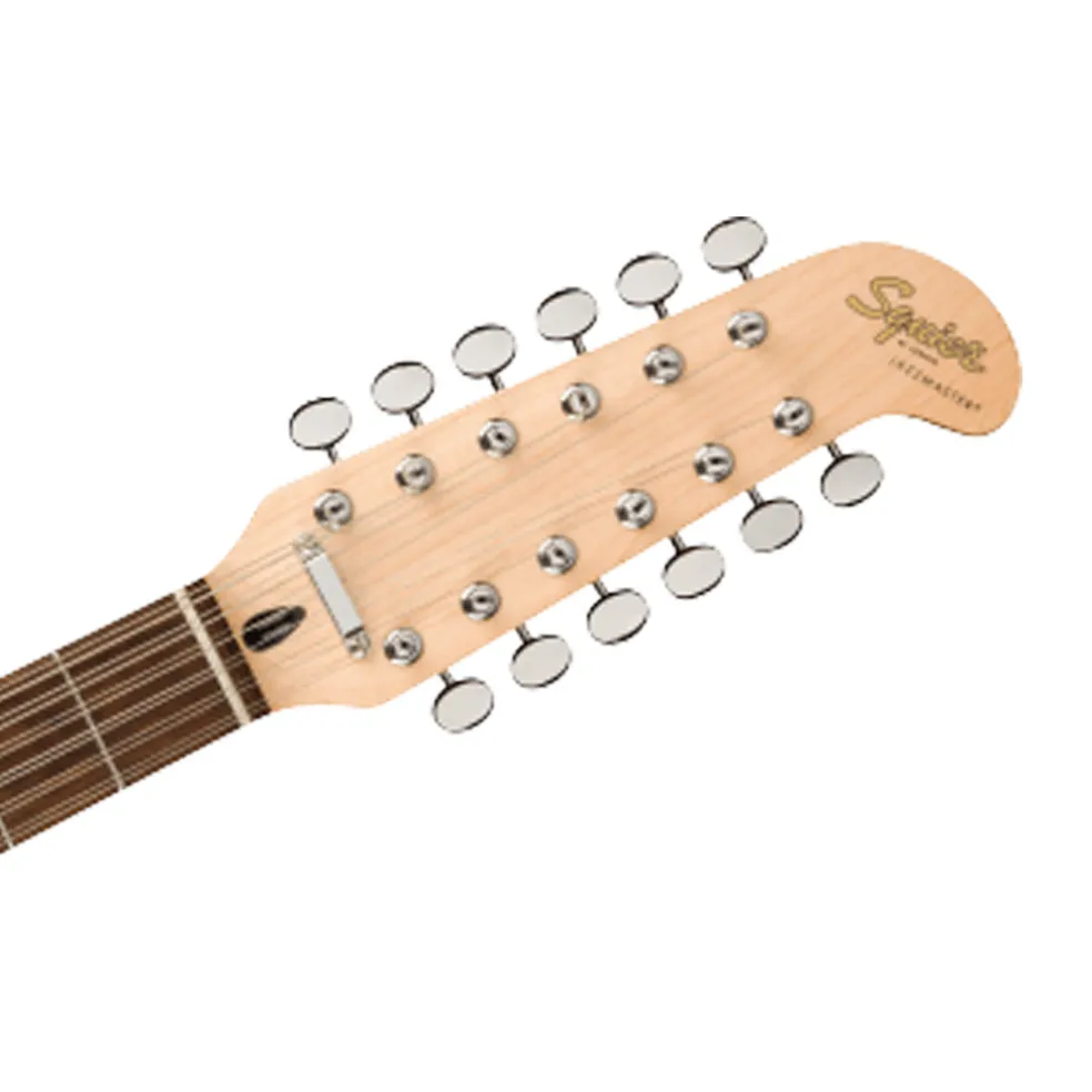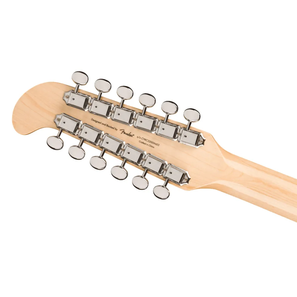 With its iconic offset body shape and rich harmonic character, the Squier® Jazzmaster® XII encourages the most adventurous players to chart a new course of guitar exploration. Featuring dual Fender-Designed alnico single-coil Jazzmaster pickups with 3-way switching and a vintage-inspired “hockey stick” headstock design, this 12-string model doubles down on chime-y tones and timeless style. Other player-friendly details include a graphite-reinforced “C”-shape neck for optimal stability and easy playability, a hybrid string-through-body/top-load bridge for reliable intonation, vintage-style tuning machines for smooth tuning action, and a gloss neck finish for a slick yet confident feel.