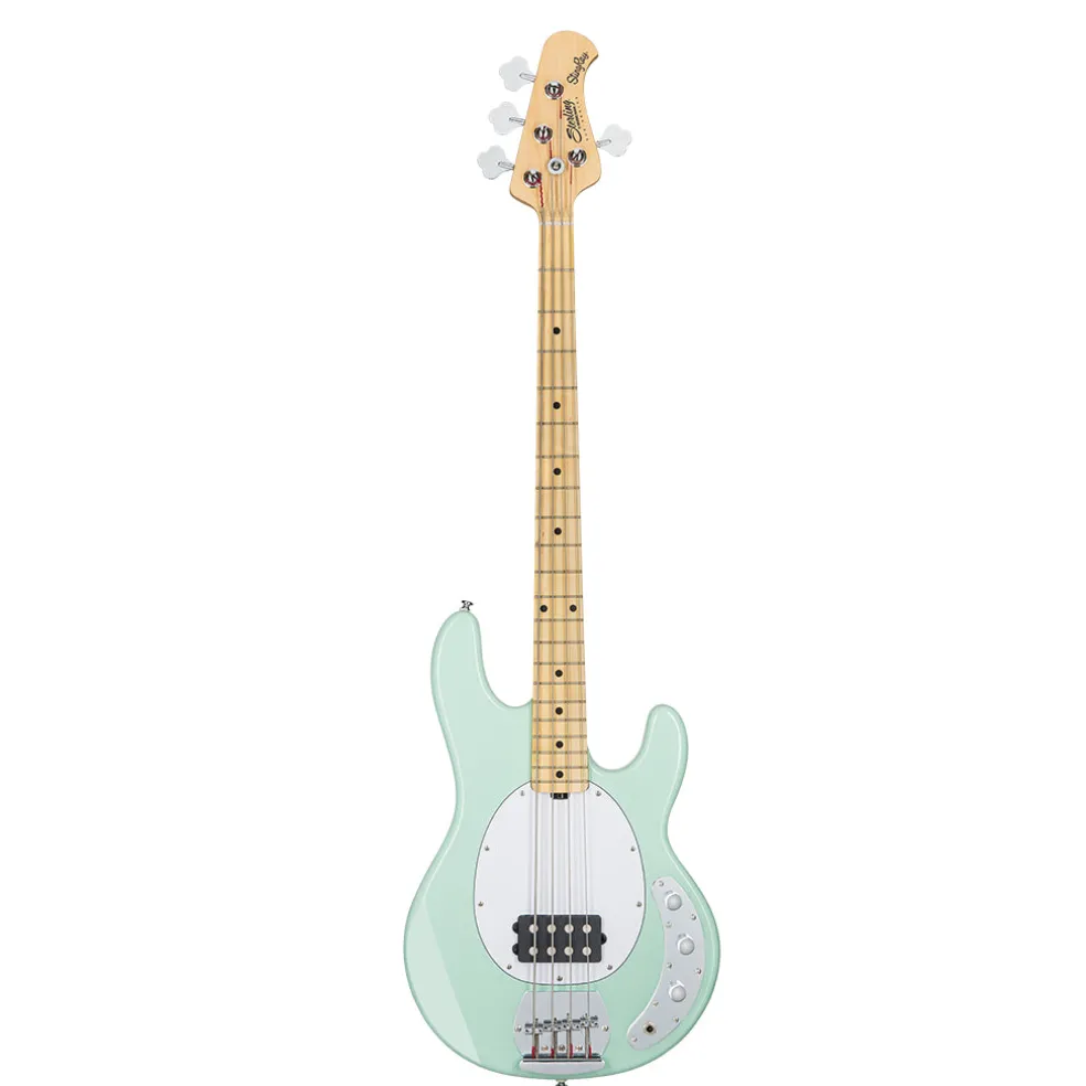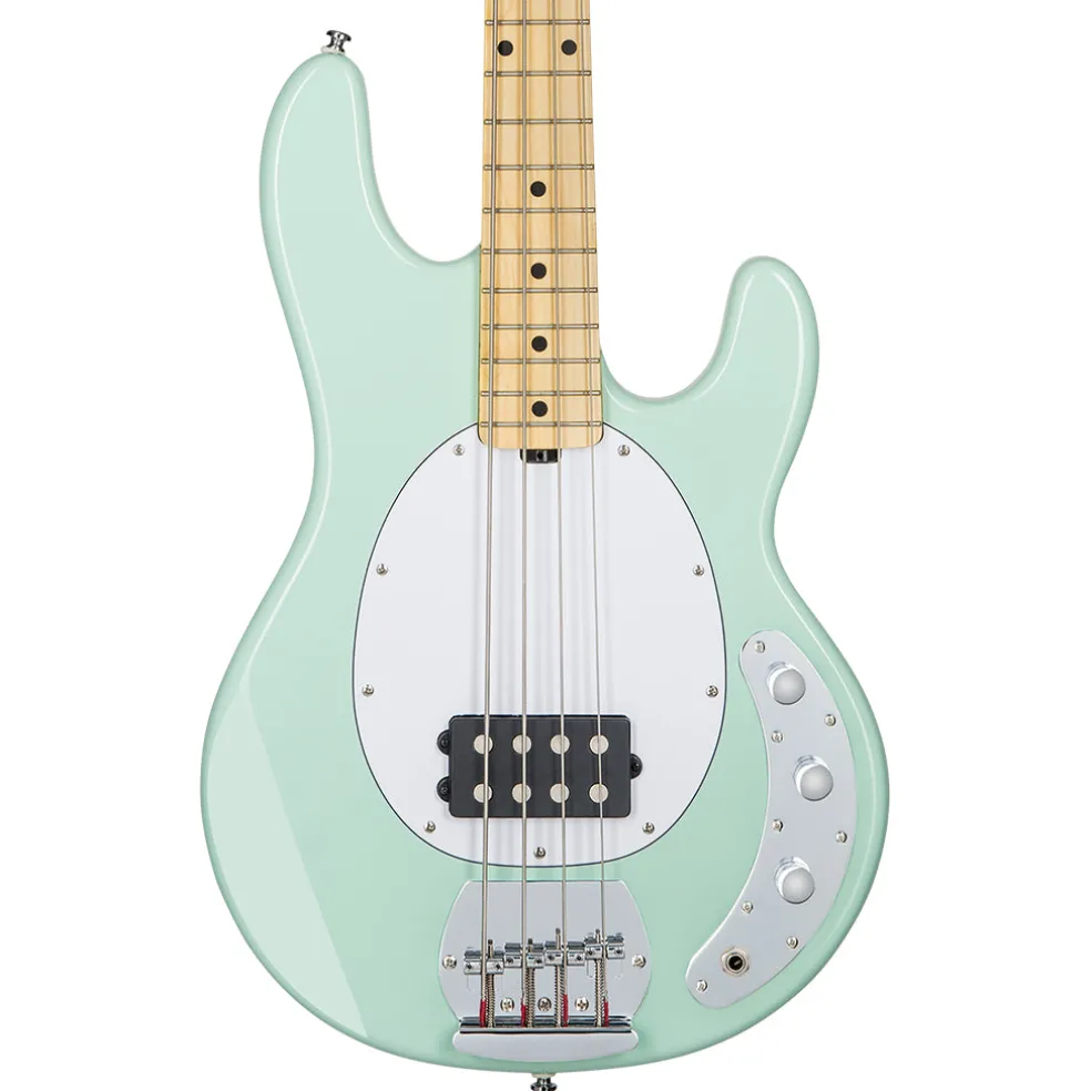 The StingRay Ray4 bass features a 9v active preamp, low noise humbucking pickups, and a fully adjustable heavy duty bridge, and a maple fretboard.