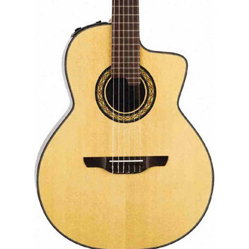 This is a true hybrid crossover nylon string guitar designed with the latin and jazz player in mind. It features a 14-fret neck to body joint and 24-fret design. The top is solid spruce for versatility and extended dynamic range. Solid rosewood back aids in projection and adds to the brilliance of the guitar. Gloss natural finish adds durability and beauty.