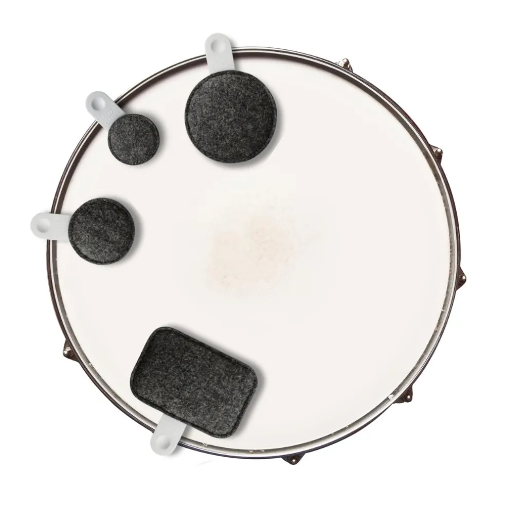 Unlike adhesives, Drops vibrate with the drum head creating an active gate effect. This removes overtones while letting the natural intonation of the drums come through. To achieve this, Drops are weighted with hundreds of steel ball bearings, secured inside a die cut felt pod. A durable and effective design (patent pending).