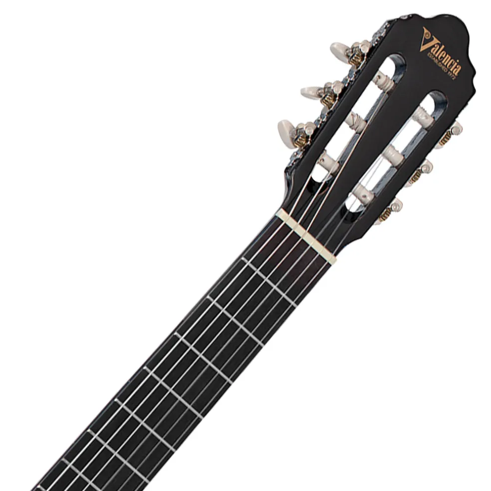 An Excellent First Nylon String Classical Guitar! The Valencia Series 100 is a fully featured, nylon string guitar that’s affordable enough for any guitarist. Its neck scale length allows you to play with true classical finger style. As a result, it is just what you need to develop proper playing technique. Whether you’re a very young player or a little older, the Series 100 ensures a correct fit for all players.
