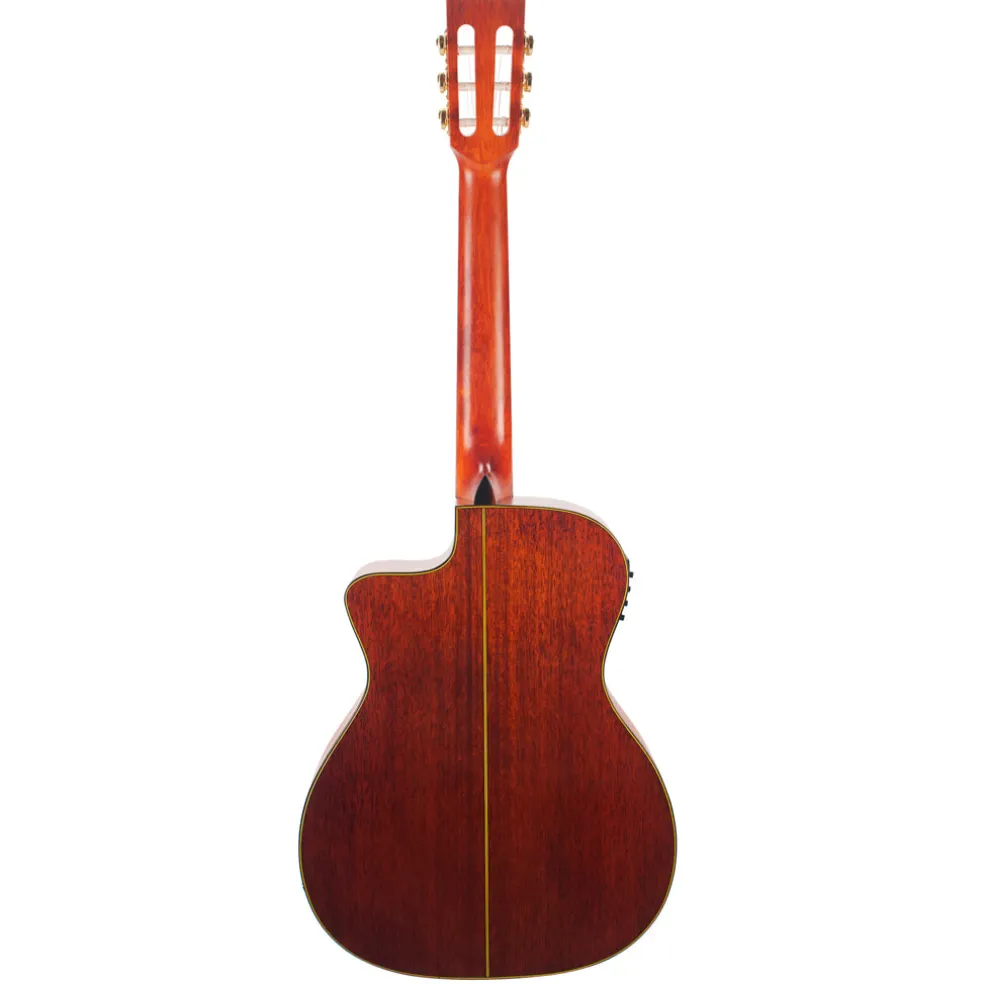 Players will appreciate the distinctive tonal flavors of a nylon string guitar coupled with a sleek, ultra-playable neck and styling that steel string acoustic guitars are known for. The Select Sitka Spruce top provides great clarity and detail whilst the Nato back and sides balance the tone by adding warmth and projection. The Mahogany neck with two-way truss rod topped with a Rosewood fingerboard provides for smooth, effortless playing feel.